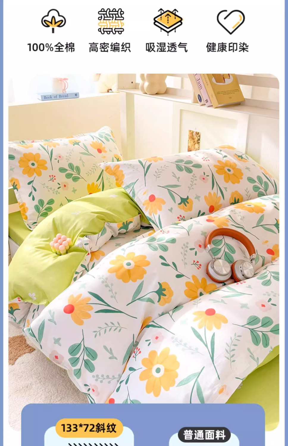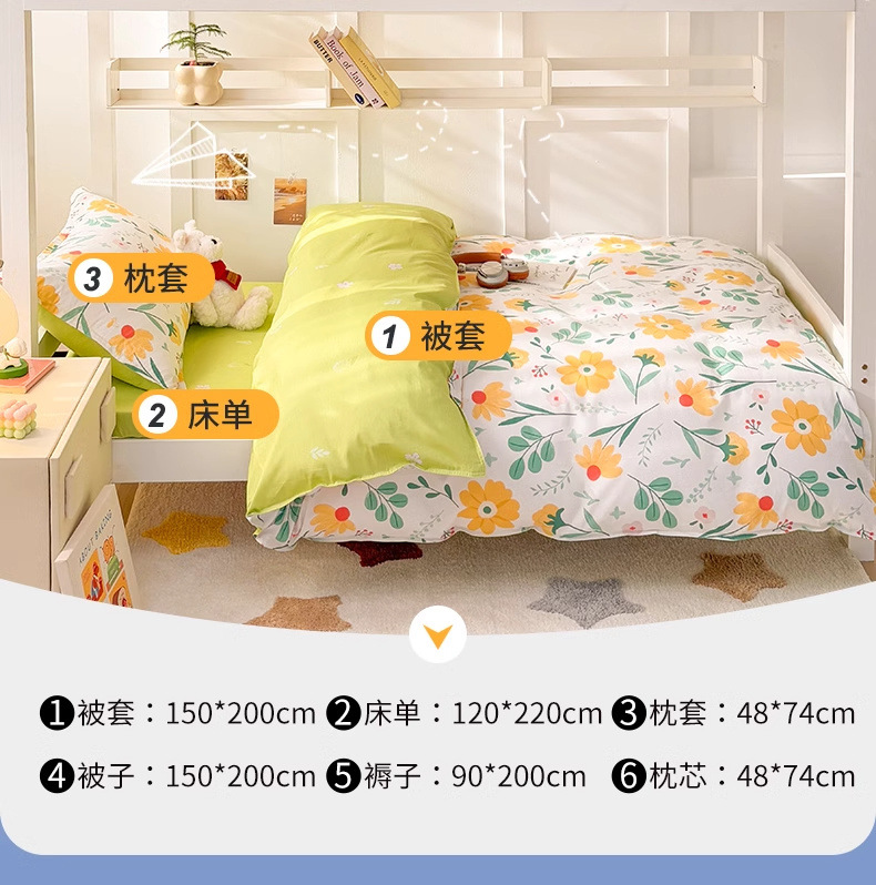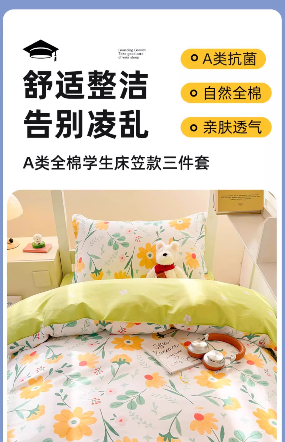 Ropa de cama de algodón de tres piezas Ropa de cama para dormitorio de estudiantes Ropa de cama de algodón Funda de edredón Cama individual Colchón de 90x200 Seis