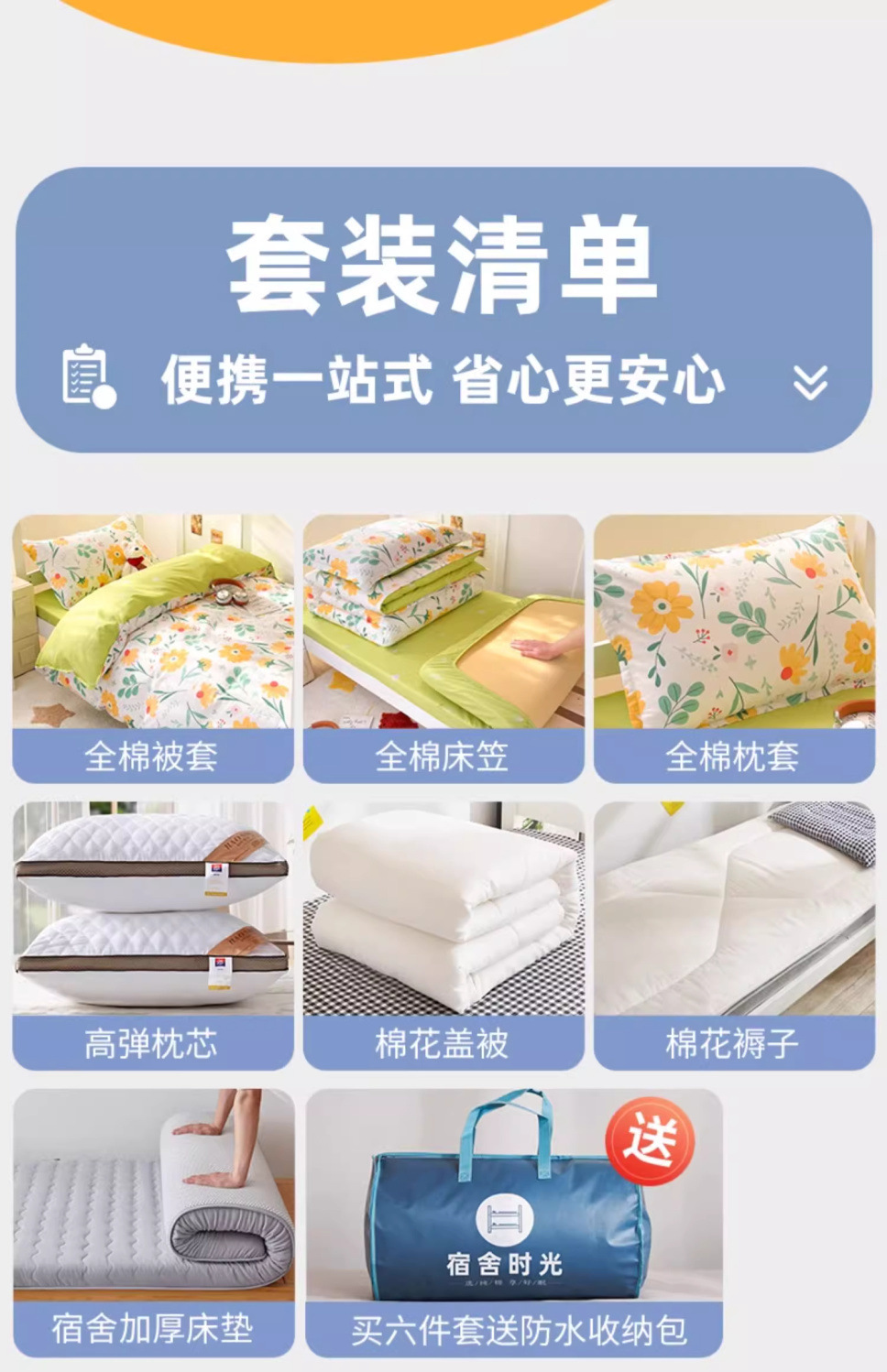 [Estilo de cama] Juego de seis piezas de cama 0.9 (colchón de edredón de algodón de 3 kg)