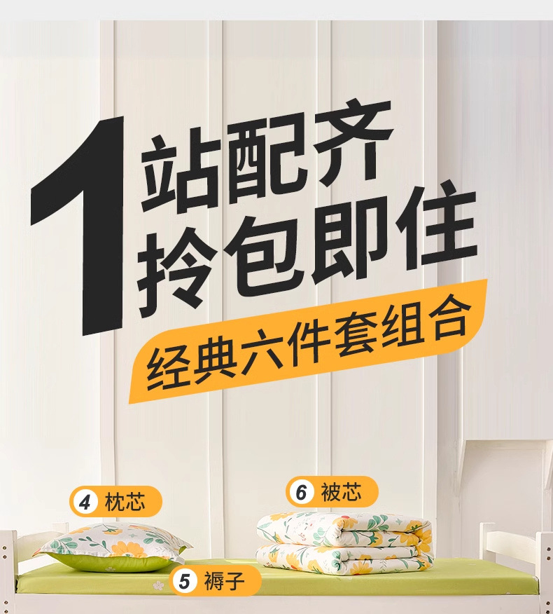 [Estilo de cama] 1.2 juego de cama de seis piezas (colchón de edredón de algodón de 3 kg)