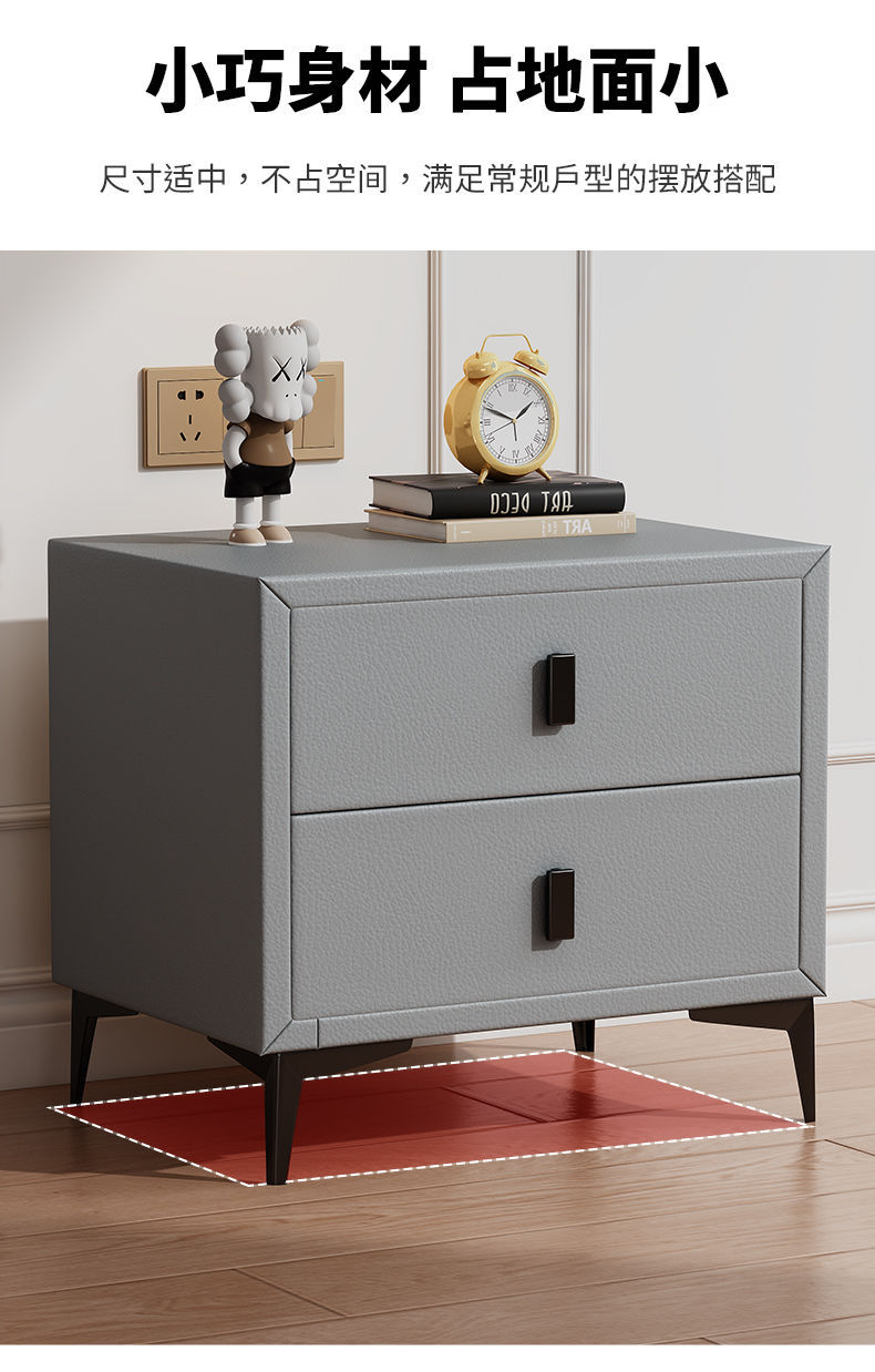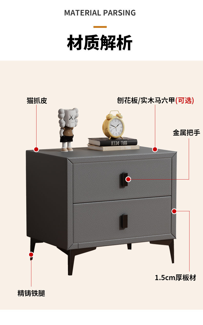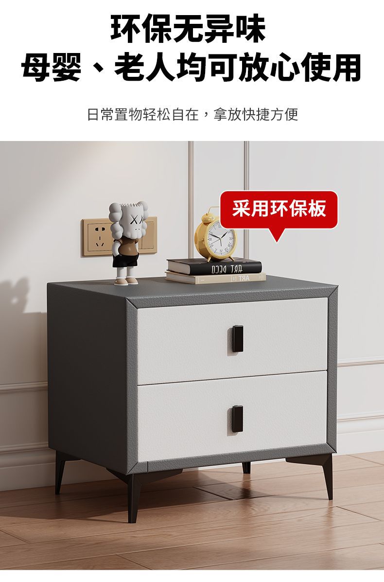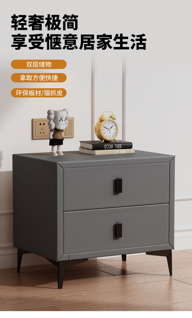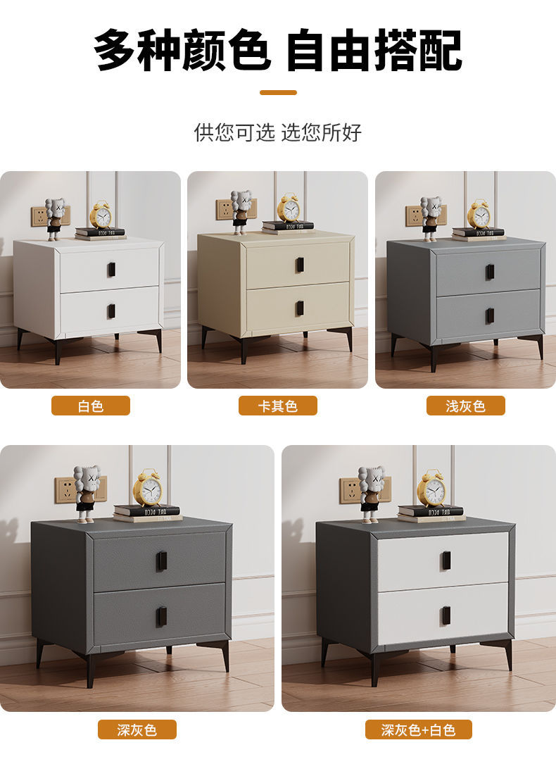 Mesa de cama de lujo ligera cuero moderno de madera maciza almacenamiento de dormitorio simple pequeño gabinete de cama almacenamiento de tablero de roca doméstico