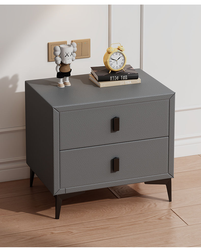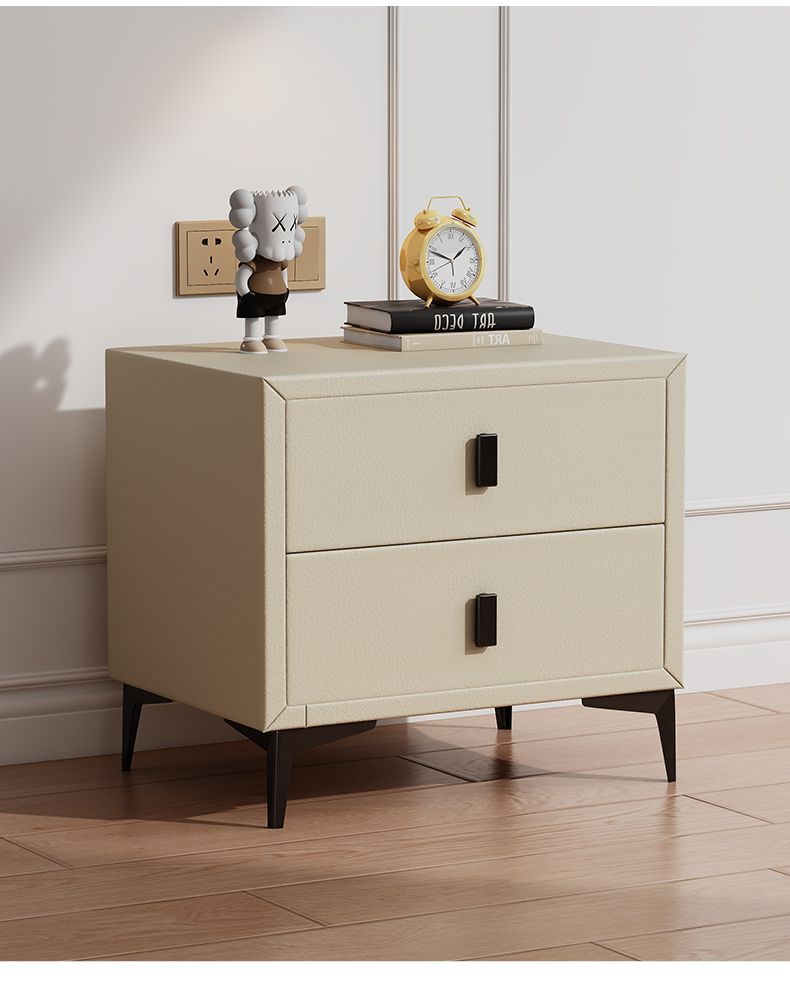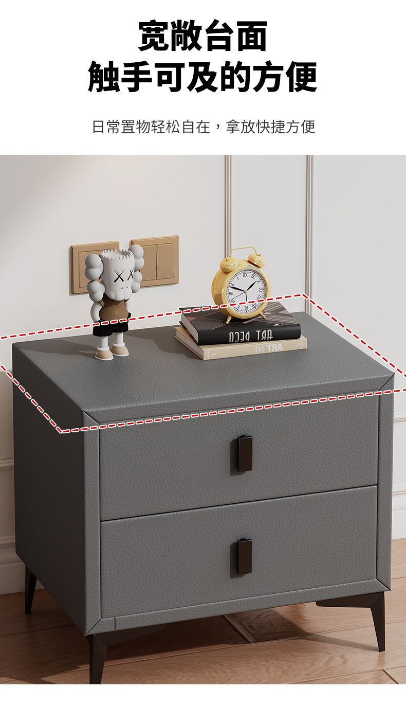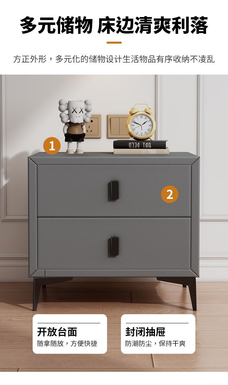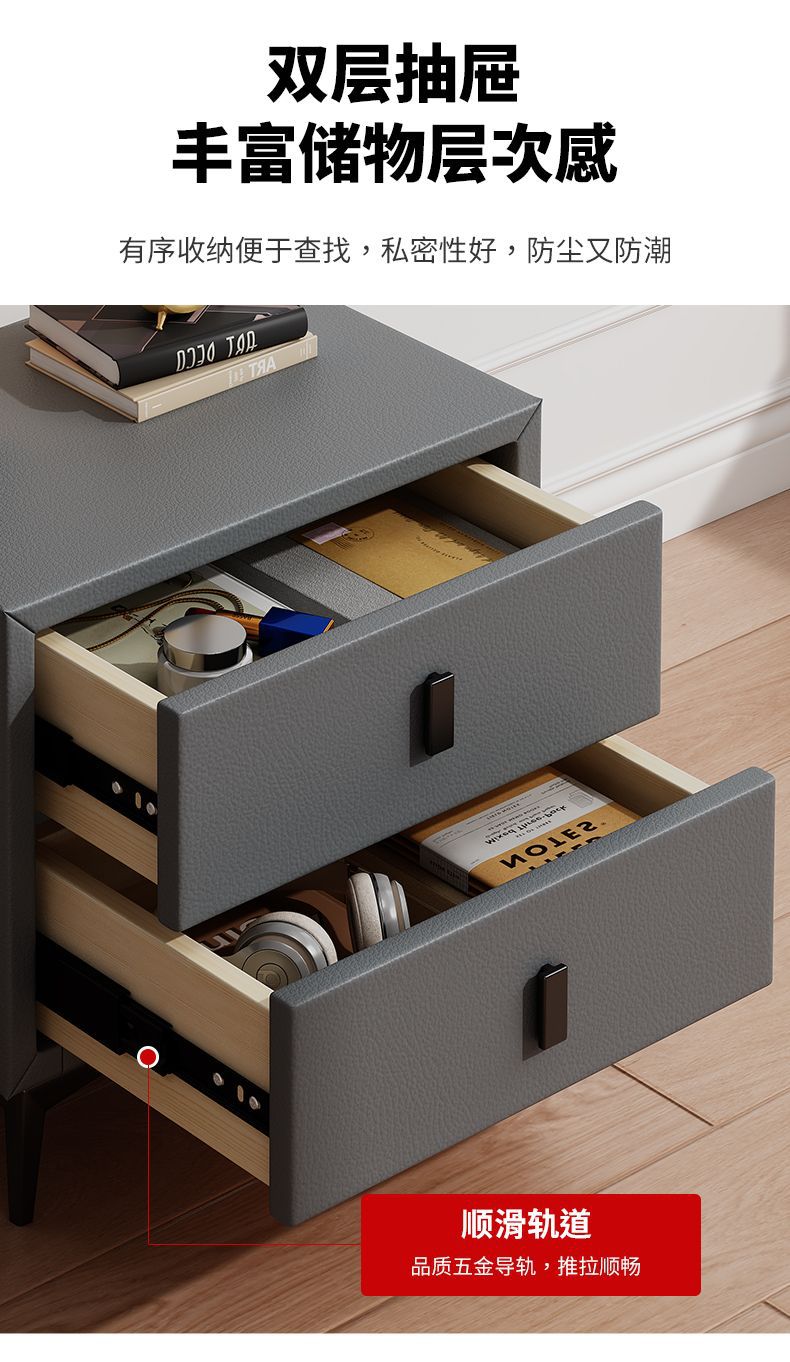 Mesa de cama de lujo ligera cuero moderno de madera maciza almacenamiento de dormitorio simple pequeño gabinete de cama almacenamiento de tablero de roca doméstico