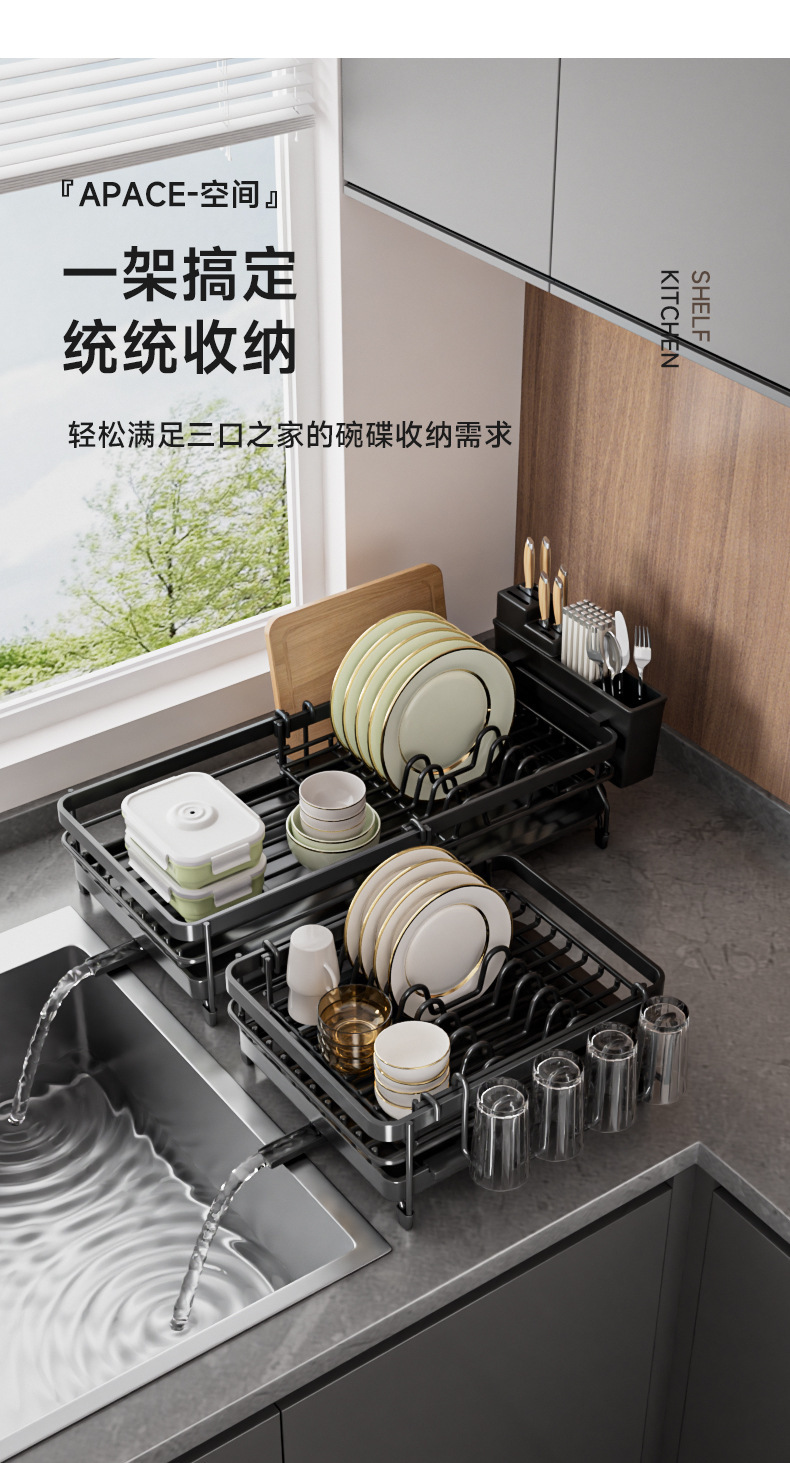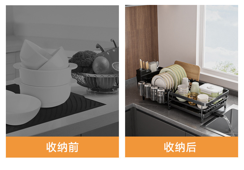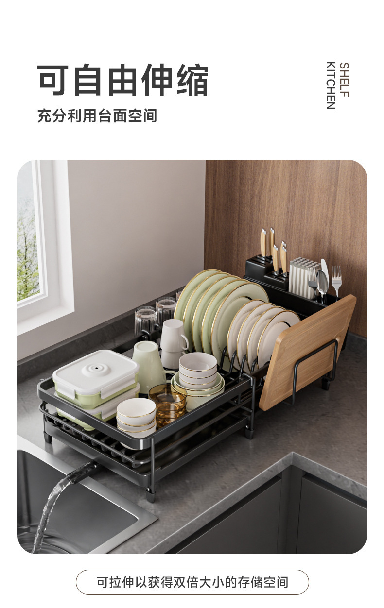 Cocina transfronteriza retráctil cuchillo, fregadero, platos, platos, platos, cubiertos, estante de almacenamiento de objetos, cuchillos y tenedores, palillos, tazas y utensilios