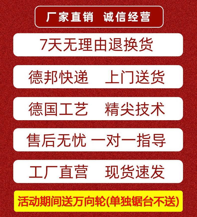 | Color | Mesa de sierra gruesa (sin sierra de banda), nueva mesa de sierra de rieles de aleación de aluminio gruesa (sin sierra), mesa de sierra de rieles de aleación de aluminio gruesa (sin sierra), mesa de sierra de rieles de aleación de aluminio gruesa + extensión (sin sierra), nueva mesa de sierra de rieles gruesa + sierra única sin polvo, mesa de sierra de rieles gruesa + sierra única sin polvo, mesa de sierra de rieles gruesa + sierra de rieles gruesa + sierra de rieles gruesa, Mesa de sierra de rieles más gruesa + sierra de hijas silenciosas sin escobillas sin polvo, nueva mesa de sierra de rieles más gruesa + sierra de hijas sin polvo + metal desnudo, nueva mesa de sierra de rieles más gruesa + sierra de hijas manuales + metal desnudo, mesa de sierra de rieles más gruesa + sierra de hijas manuales + metal desnudo con cabeza de cuchilla, mesa de sierra de rieles más gruesa + sierra de hijas eléctricas + metal desnudo con cabeza de cuchilla, mesa de sierra de rieles más gruesa + sierra de hijas eléctricas + servo sin escobillas + máquina de gong, mesa de sierra de rieles más gruesa + sierra de hijas manuales sin polvo + máquina de sellado, mesa de sierra de rieles más gruesa + sierra de hijas eléctricas + máquina de sellado, engrosar la mesa de sierra de rieles + servo madre sin escobillas + máquina de sellado de bordes, el nuevo engrosar la mesa de sierra de rieles + conjunto completo eléctrico, engrosar la mesa de sierra + sierra de madre sin polvo + máquina de rodadura + máquina de sellado de bordes, engrosar la mesa de sierra de rieles + sierra de madre sin escobillas + máquina de rodadura + máquina de sellado de bordes, engrosar la mesa de sierra de rieles + placa de extensión ensanchada + sierra de una sola sierra sin polvo, engrosar la mesa de sierra de rieles + ensanchada + sierra de madre sin polvo manual, engrosar la mesa de sierra de rieles + ensanchada + sierra de madre eléctrica, engrosar la mesa de sierra de rieles + ensanchada + sierra de madre sin polvo, espesar la mesa de sierra de dos rieles + ensanchamiento + silenciosa sierra de madre sin cepillo, espesar la mesa de sierra de dos rieles + ensanchamiento + sierra de madre manual + máquina de rodamiento, espesar la mesa de sierra de dos rieles + ensanchamiento + sierra de madre eléctrica + máquina de rodamiento, espesar la mesa de sierra de dos rieles + ensanchamiento + sierra de madre sin cepillo + máquina de rodamiento, espesar la mesa de sierra de dos rieles ensanchamiento + sierra de madre manual + máquina de sellado de borde, espesar la mesa de sierra de dos rieles ensanchamiento + sierra de madre eléctrica + máquina de sellado de borde, espesar la mesa de sierra de dos rieles ensanchamiento + sierra de madre sin cepillo + máquina de sellado de borde, Mesa de sierra de doble carril más grueso + ensanchamiento + máquina de sellado de borde de sierra manual, nueva mesa de sierra de doble carril más grueso + ensanchamiento + conjunto completo eléctrico, mesa de sierra de doble carril más grueso + sierra de hembra sin polvo, mesa de sierra de doble carril cuadrado más máquina de hembra manual, nueva mesa de sierra de precisión de brazo deslizante (sin sierra de hembra), nueva mesa de sierra de precisión de brazo deslizante + sierra de hembra sin polvo, conjunto completo de sierra de doble carril más grueso (incluyendo la máquina de sellado de borde de la sierra de la madre), la mesa de sierra de doble carril más gruesa + ensanchamiento + máquina de sellado de borde de la sierra de la madre eléctrica, la mesa de sierra de doble carril + ensanchamiento + máquina de sellado de borde de la sierra de la madre eléctrica sin cepillo, la sierra de la madre eléctrica sin polvo de alta potencia (sin mesa de sierra) |