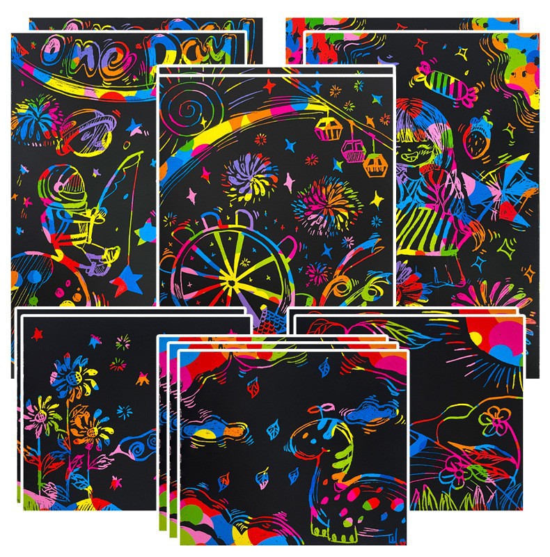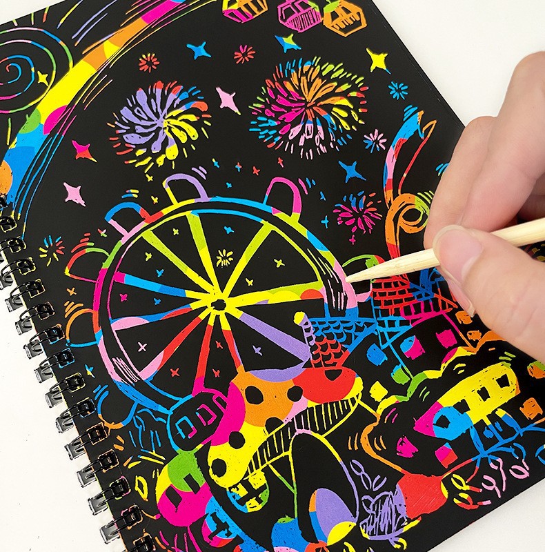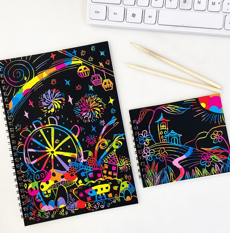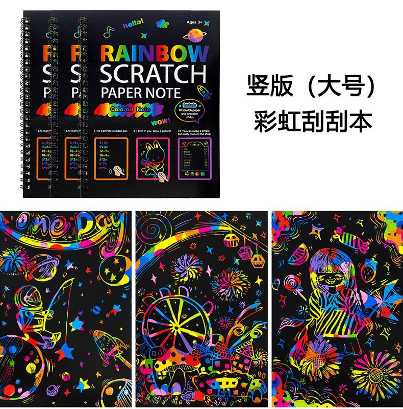 Europa y los Estados Unidos transfronterizos libros de dibujos de niños coloridos raspado papel de dibujo DIY pintura creativa a mano al por mayor raspado