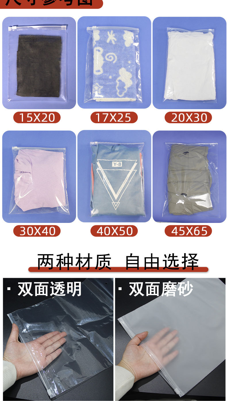 Bolsa de cremallera transparente en stock poliestirado PE bolsa de embalaje de ropa al por mayor calcetines bolsa de embalaje de ropa independiente de alta calidad