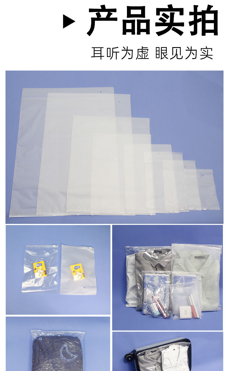 Bolsa de cremallera esmerilada transparente engrosada personalizada polvo plástico PE bolsa de almacenamiento calcetines ropa interior bolsa de embalaje