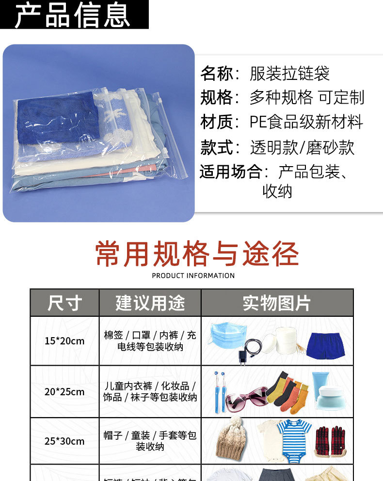 Bolsa de cremallera pe personalizada esmerilado engrosado ropa interior bolsa de embalaje al por mayor toalla transparente sellada bolsa de ropa