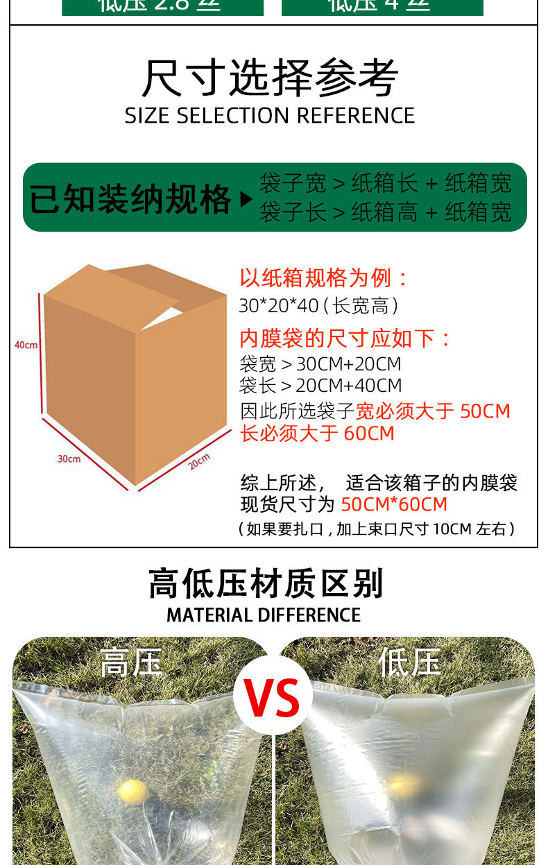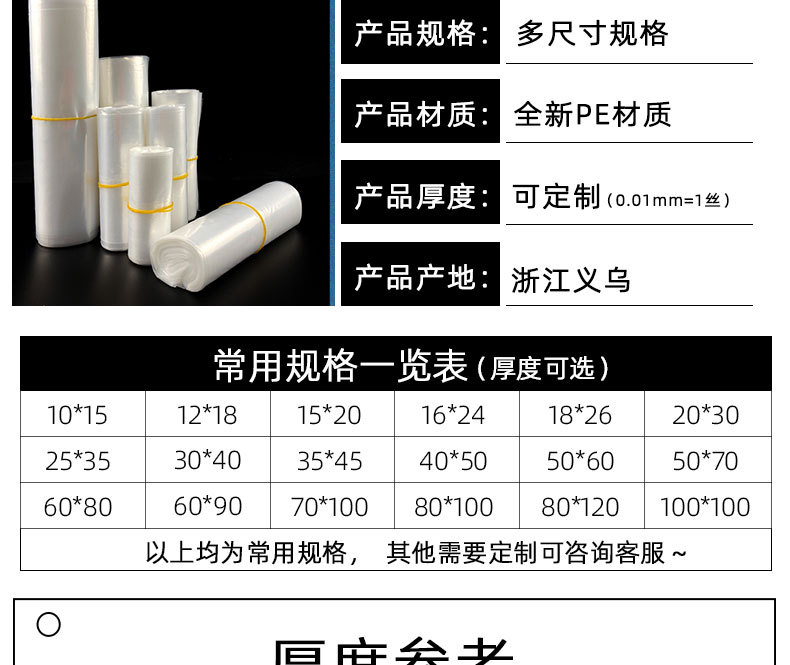 1. Tamaño de la bolsa de plástico:
