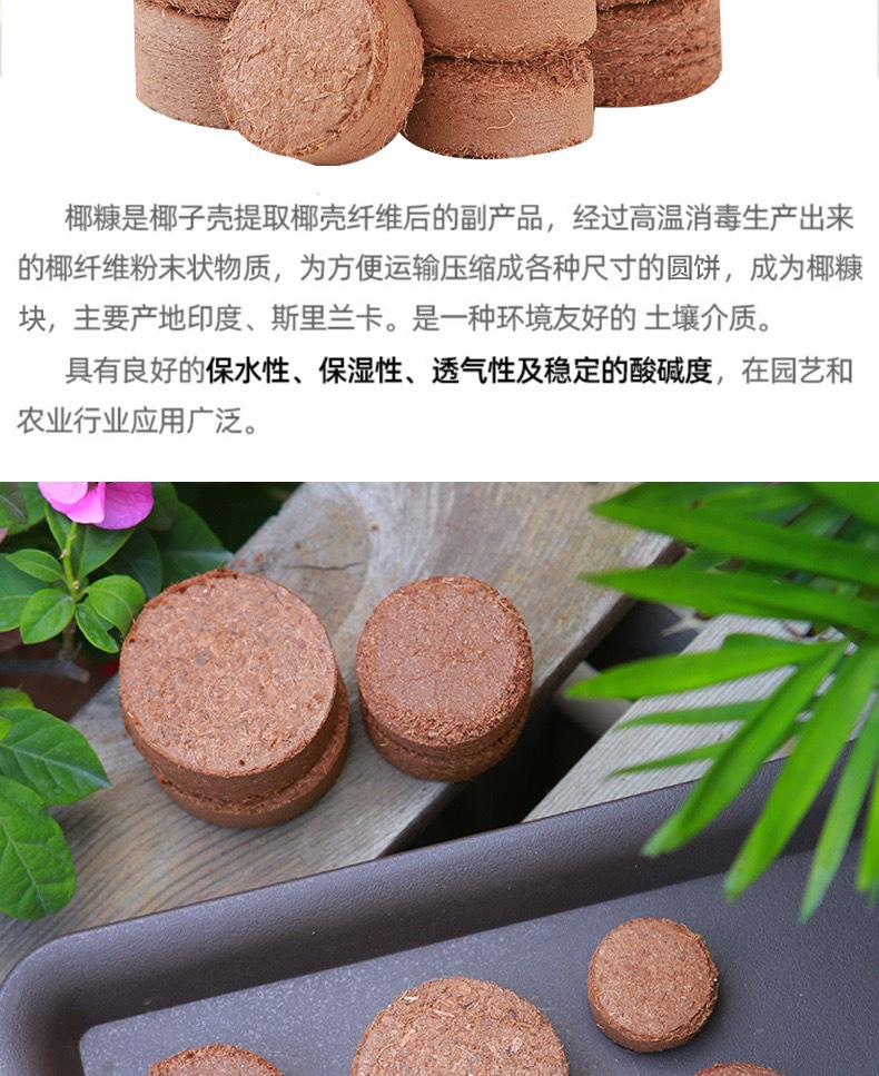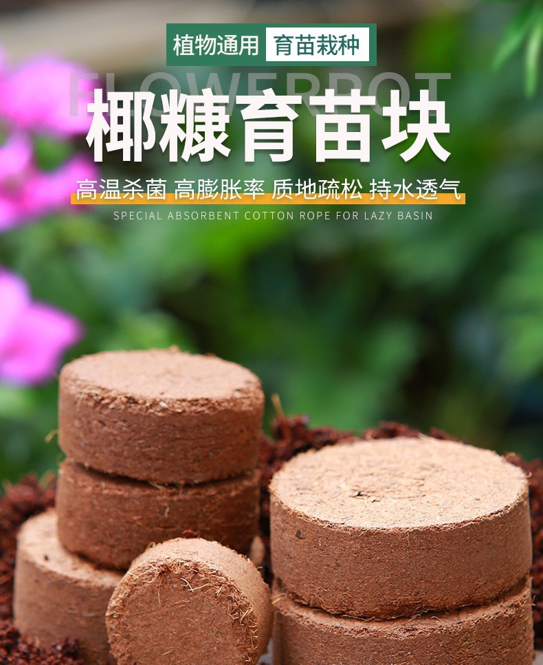 Bloque de cultivo de plántulas de césped comprimido suelo nutritivo para plantas de hierba y flores de tierra de coco de absorción de agua general fertilizante para cultivo de plántulas de tierra de coco torta circular