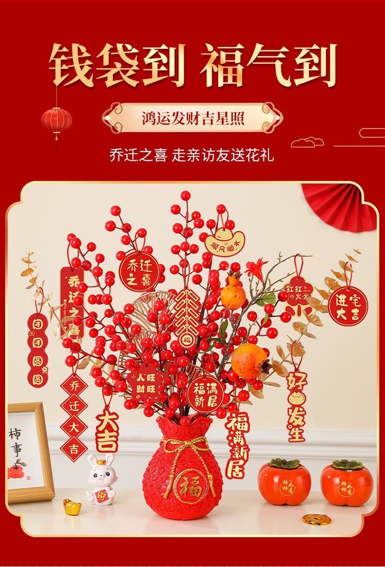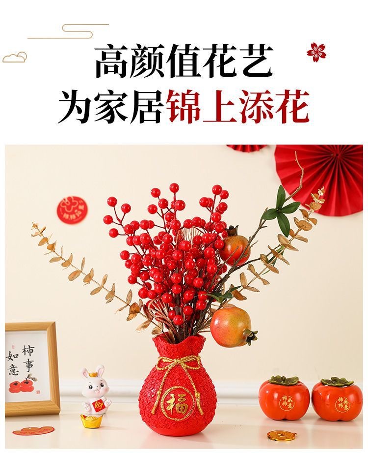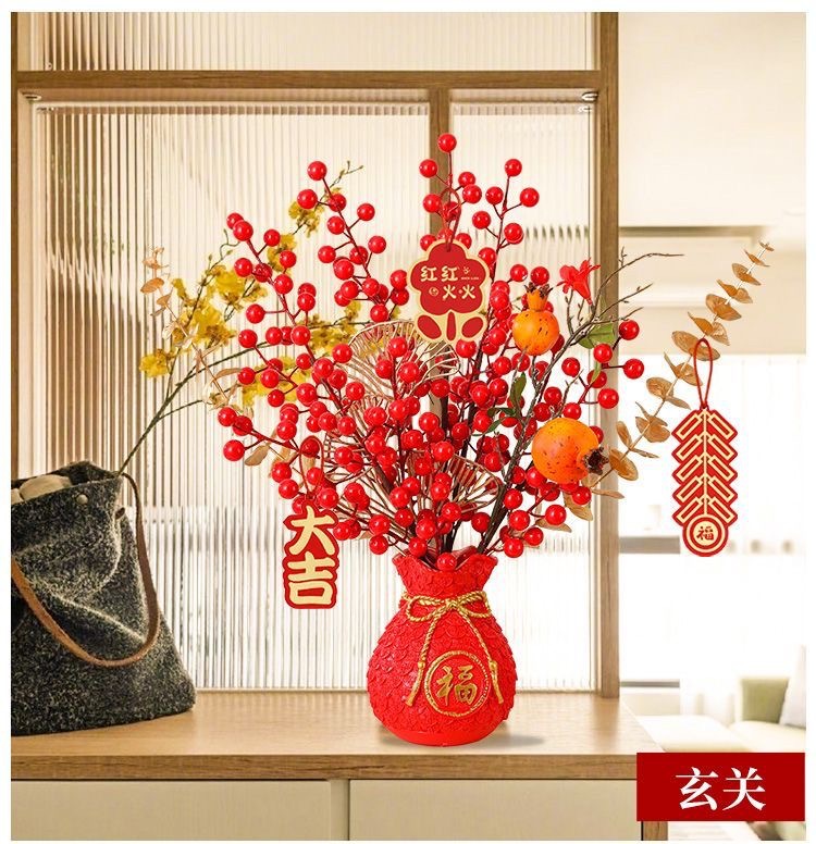 Botón de flores de nuevo año, cebada, fruta roja, flor de plástico, sala de estar, armario de vinos, puerta de entrada, decoración del hogar, decoración del tesoro