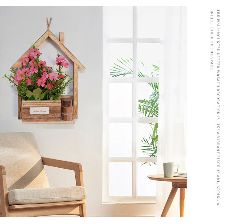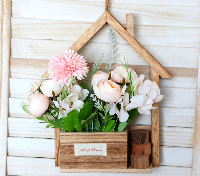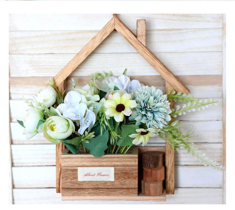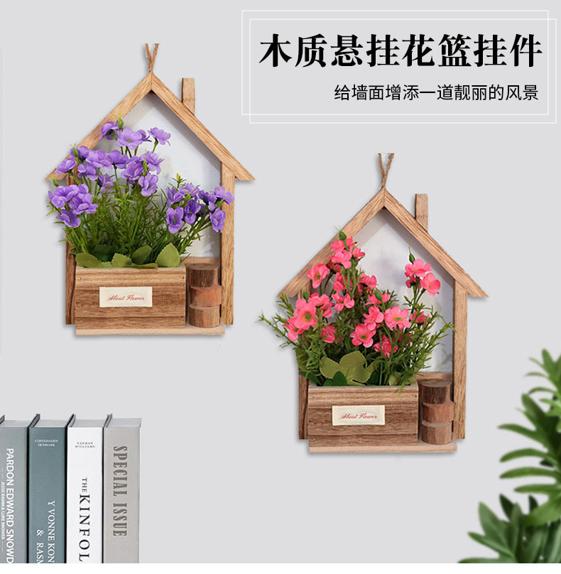 Decoración de pared de madera europea creativa en la pared maceta de flores canasta de flores decoración de pared colgante de sala de estar