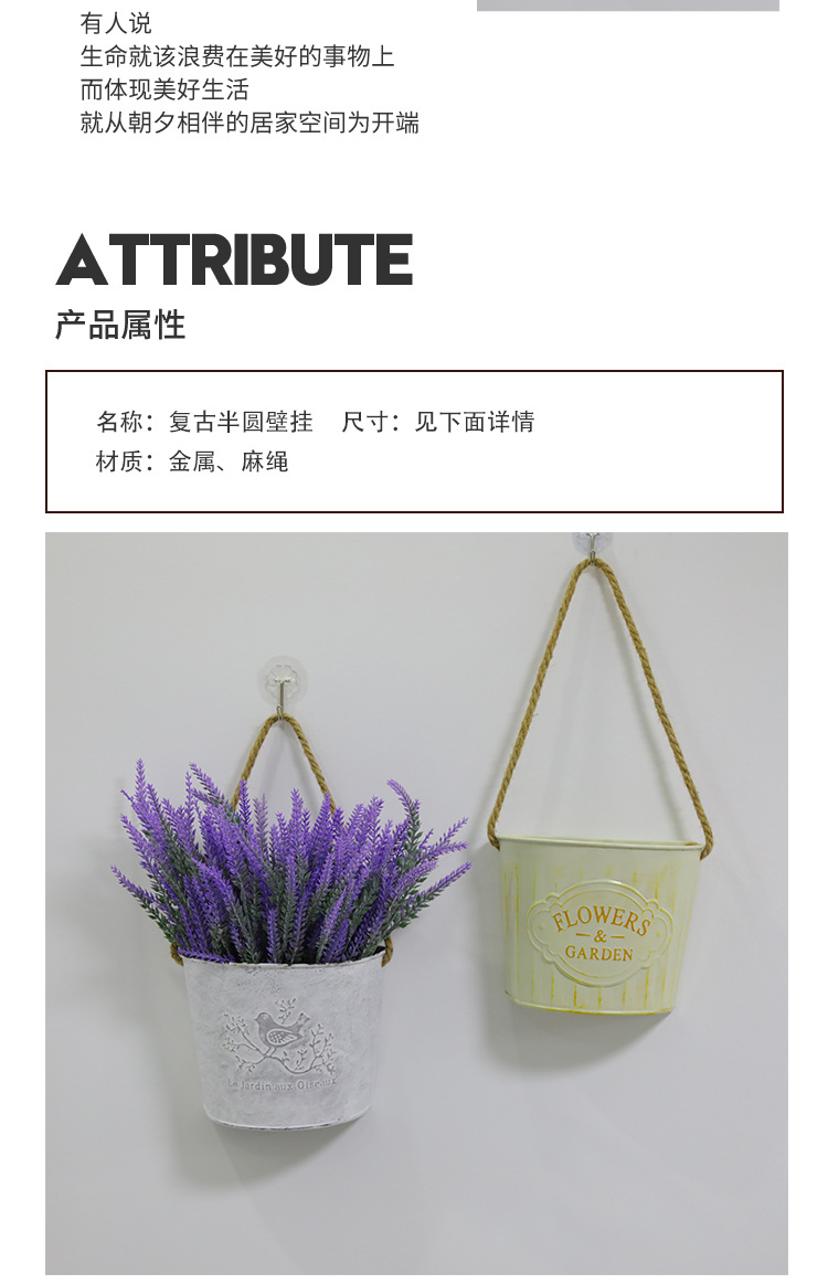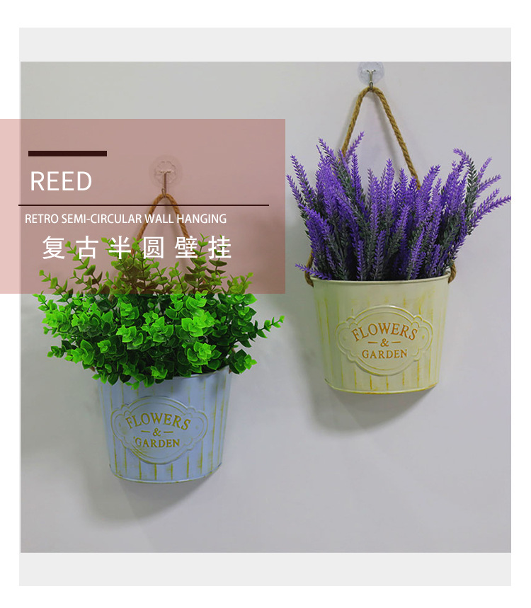 Retro hierro forjado pared flotante canasta de flores canasta de flores decoración de pared jardín patio balcón interior pared colgante barril