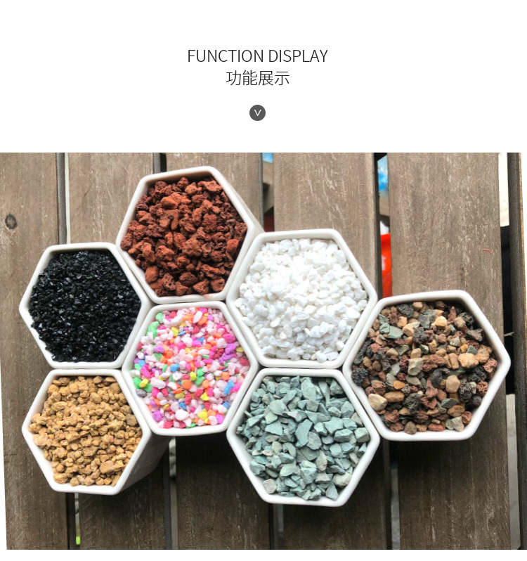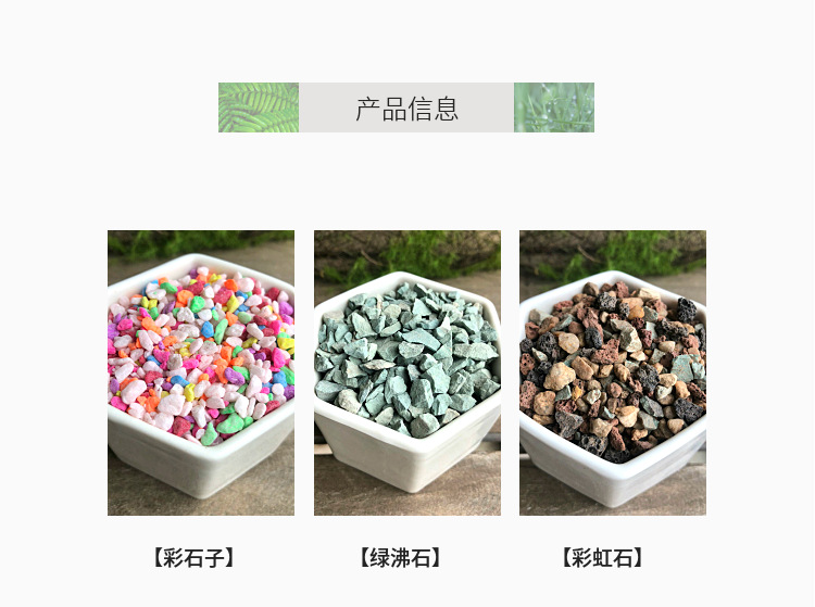 | Especificación del tamaño de partícula | Piedra volcánica 1 Jin (un paquete de partículas es más),Maifan Stone 1 Jin (un paquete de partículas es más),Zeolita verde 1 Jin (más partículas por paquete),Piedra roja coloreada 1 Jin (un paquete de partículas es más),Piedra Blanca 1 Jin,Piedras de colores 1 Jin,White Stone 50 Jin bolsa grande (paquete de logística),Piedras de colores 50 Jin bolsa grande (logística del paquete),Cristal negro 1 Jin |