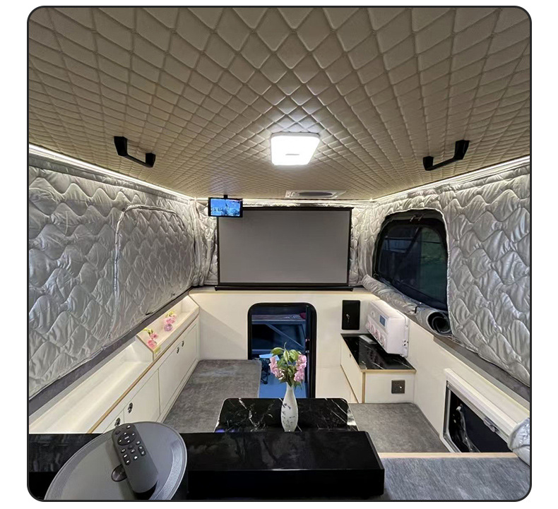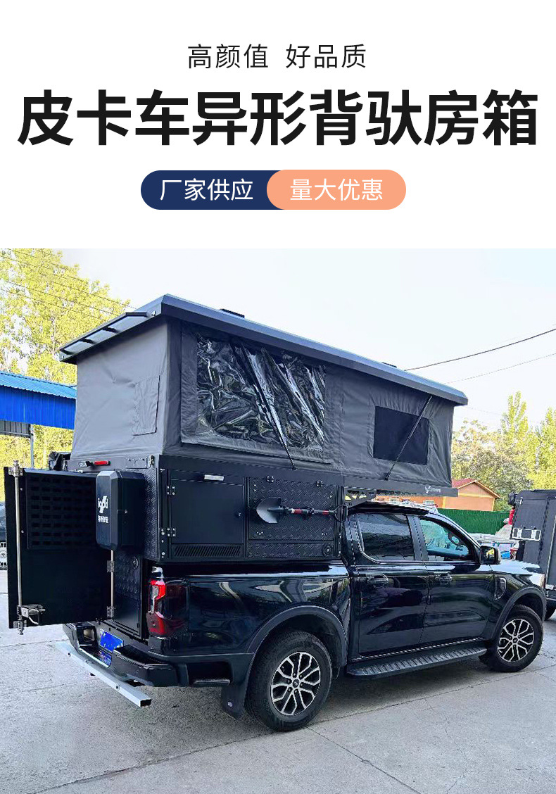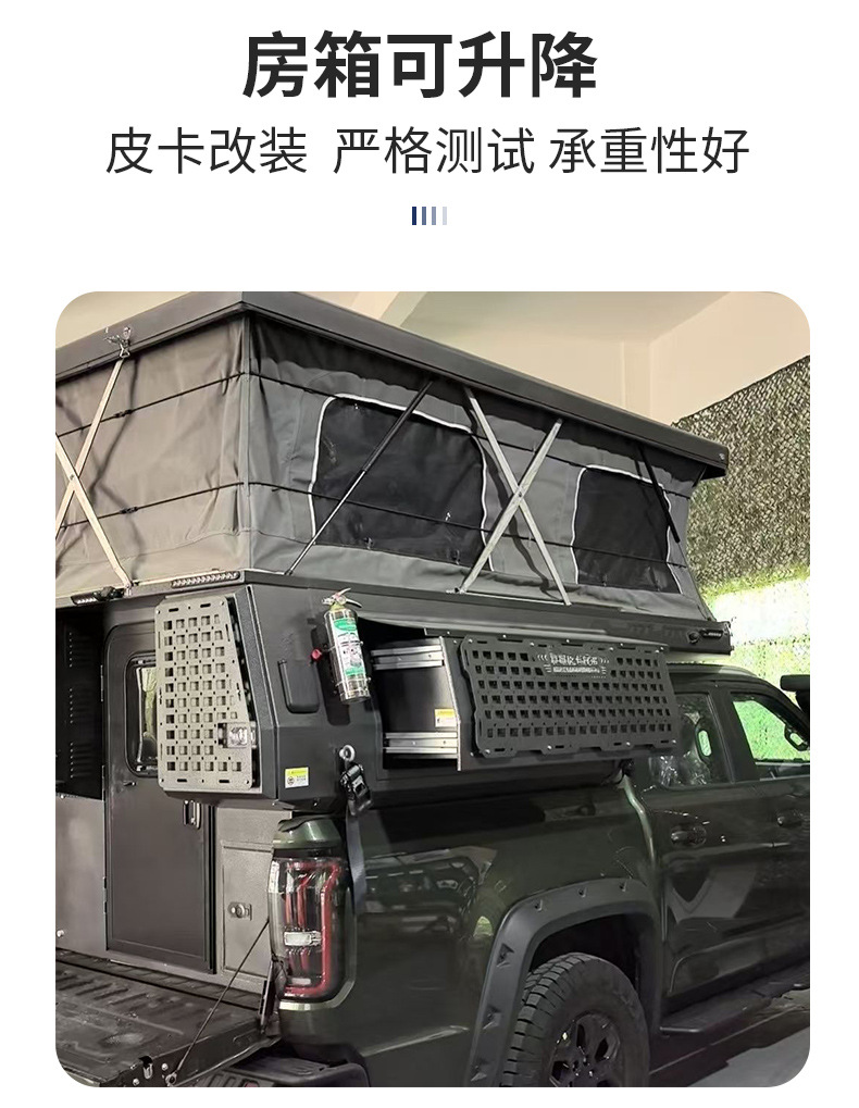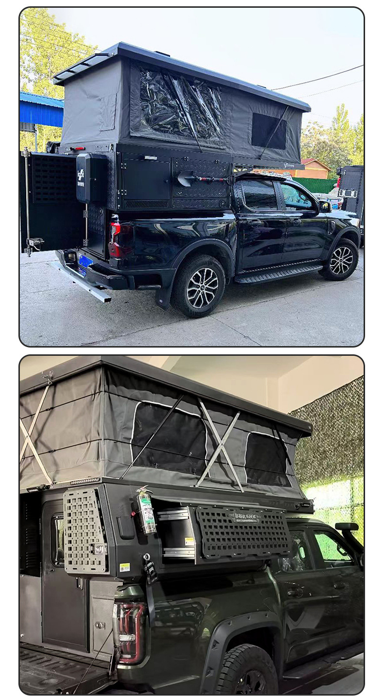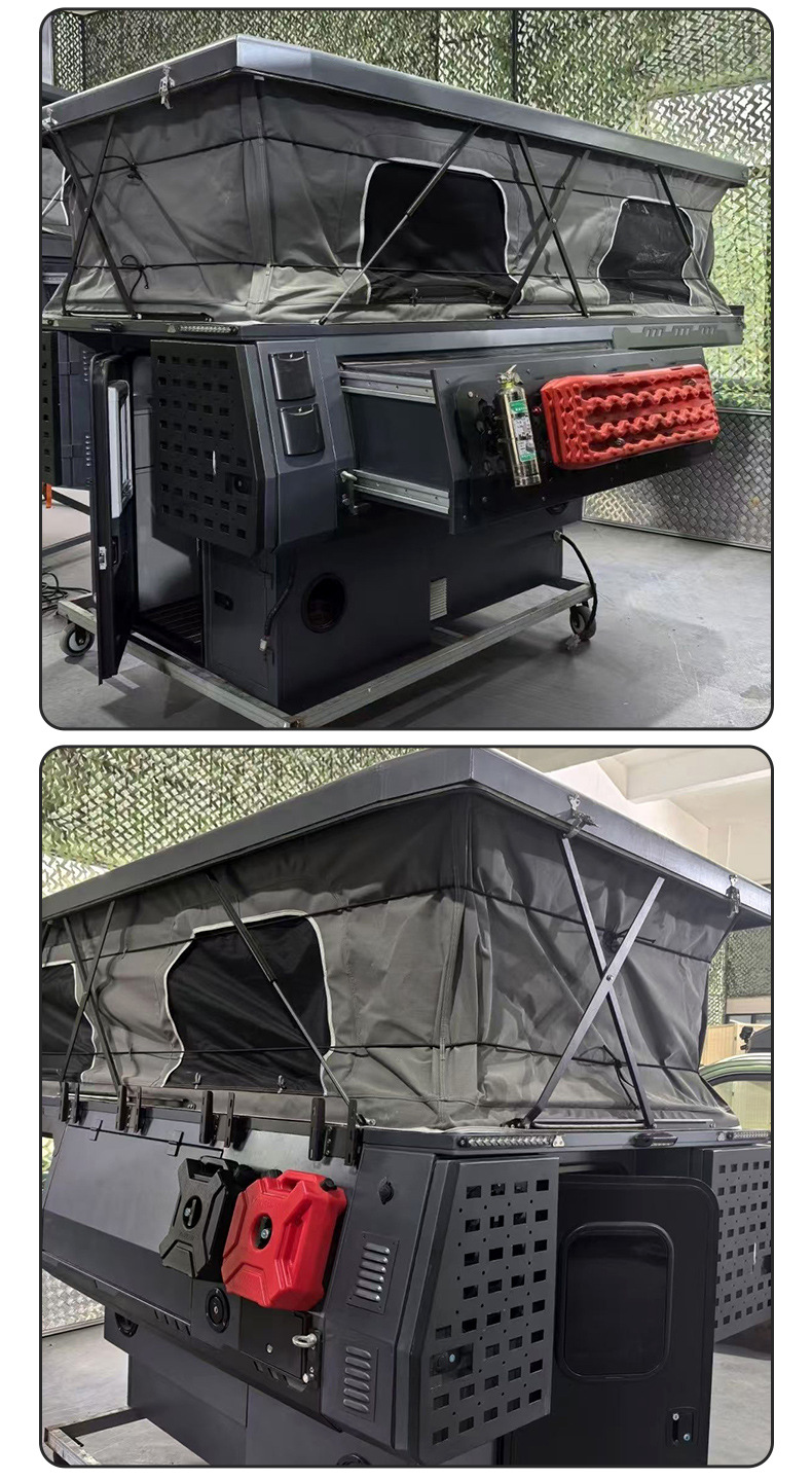 Camión de forma especial caja de la habitación de carga trasera camioneta todoterreno techo rígido residencia de camping habitación superior caja de la habitación elevable negra