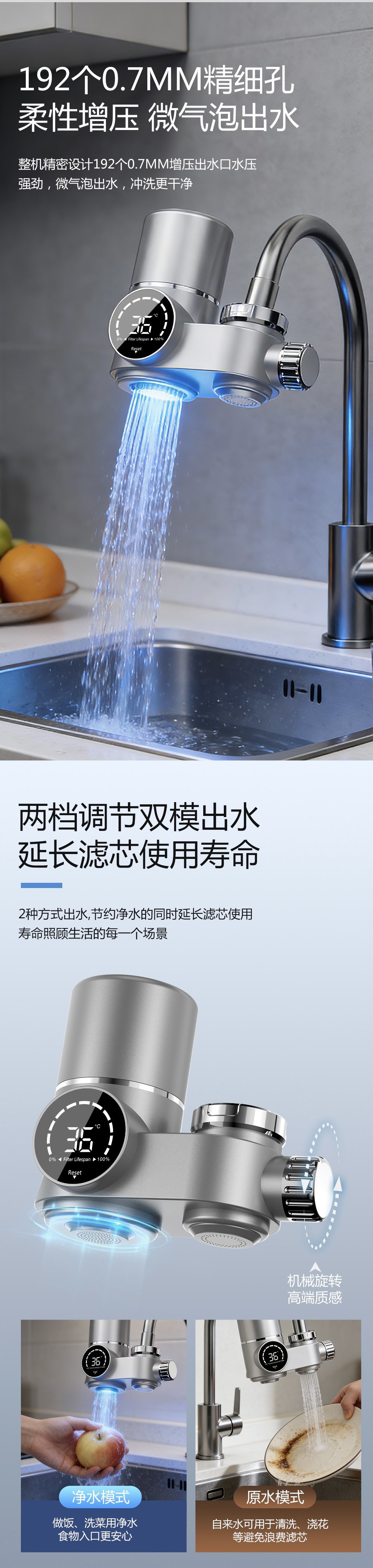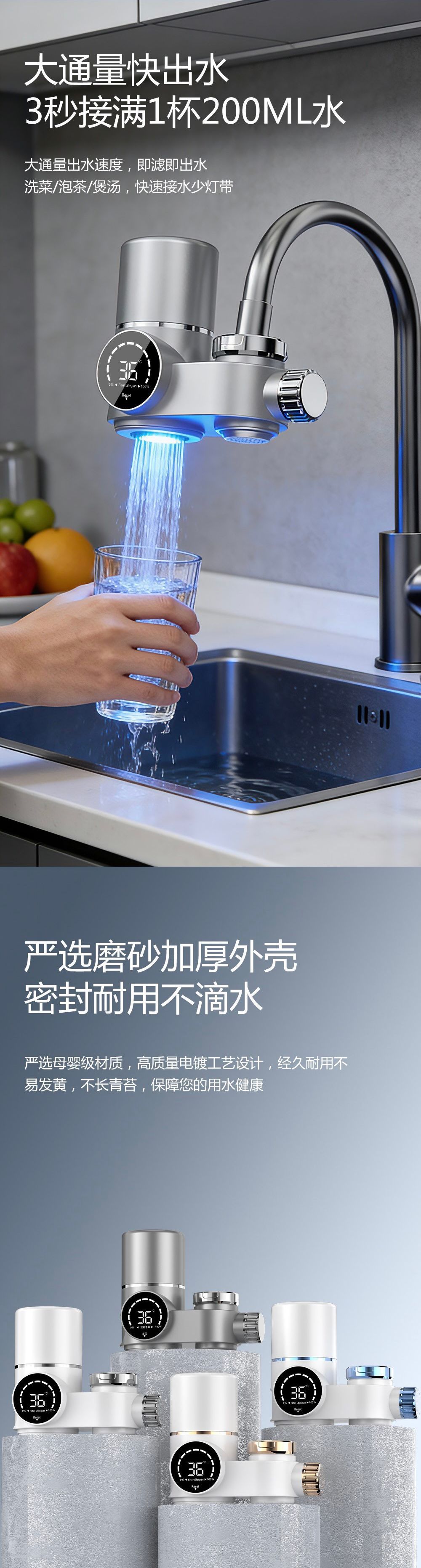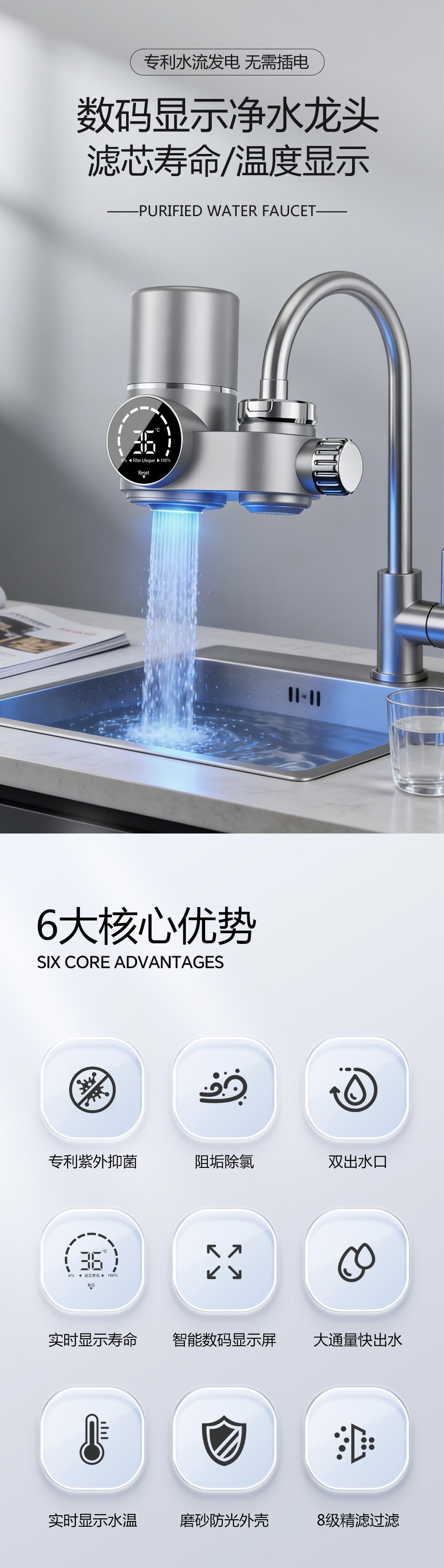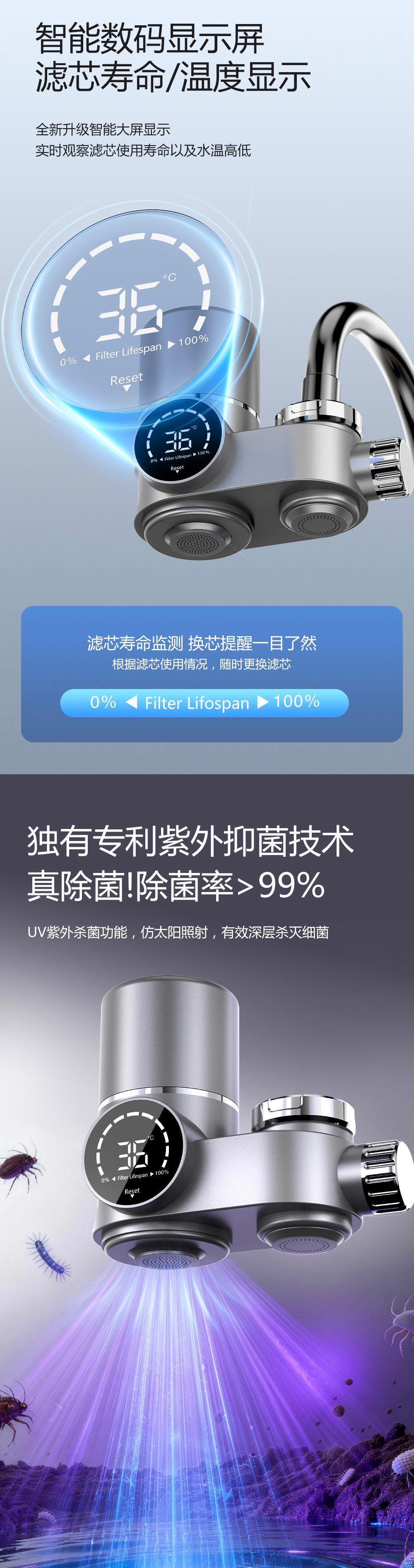 Comercio exterior pantalla digital purificador de agua de grifo cocina doméstica filtro de agua del grifo filtro de agua de ultrafiltración bebida directa