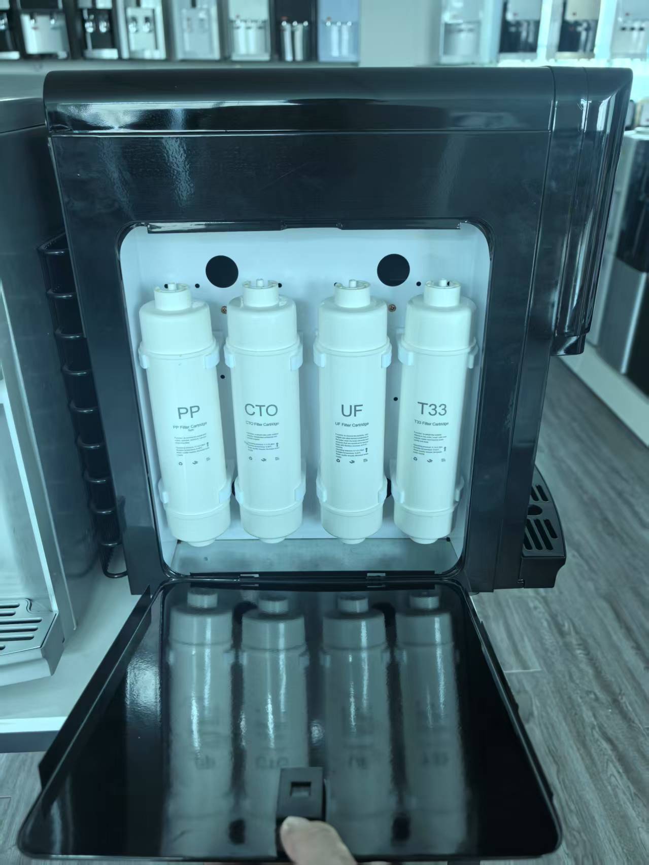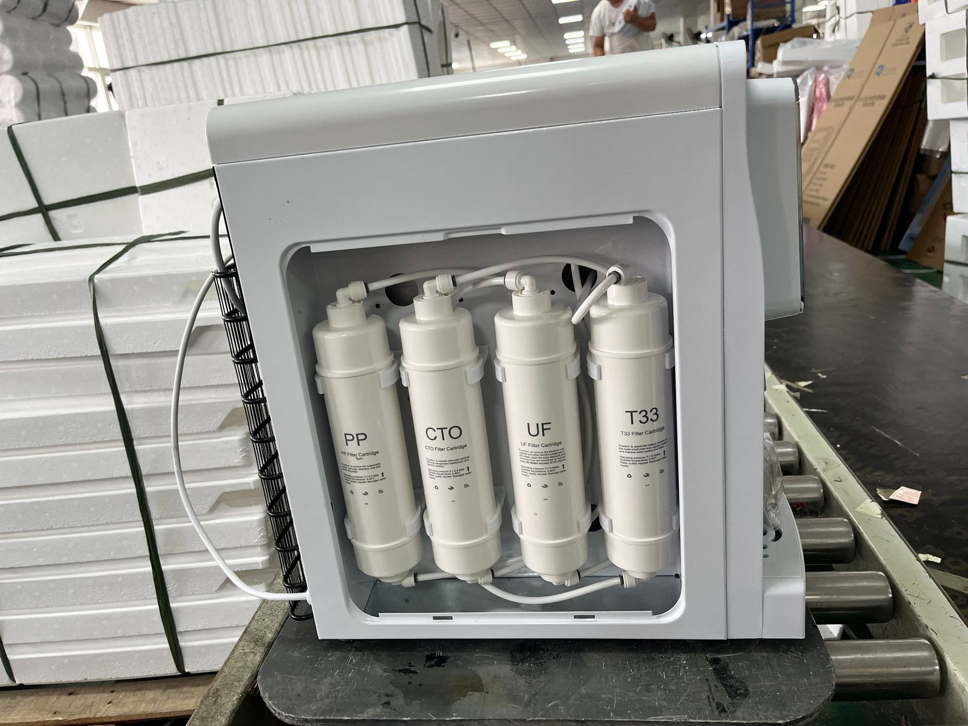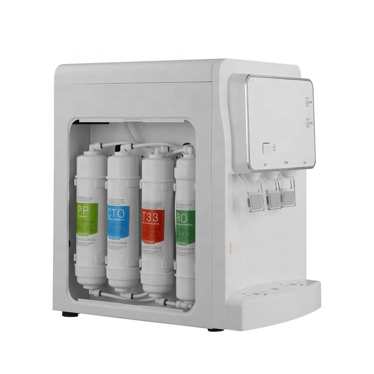 Contador de agua de filtro de escritorio con filtro de conexión rápida de 10 pulgadas 2 secciones de partículas de algodón PP membrana de ultrafiltración de carbón activado bebida directa