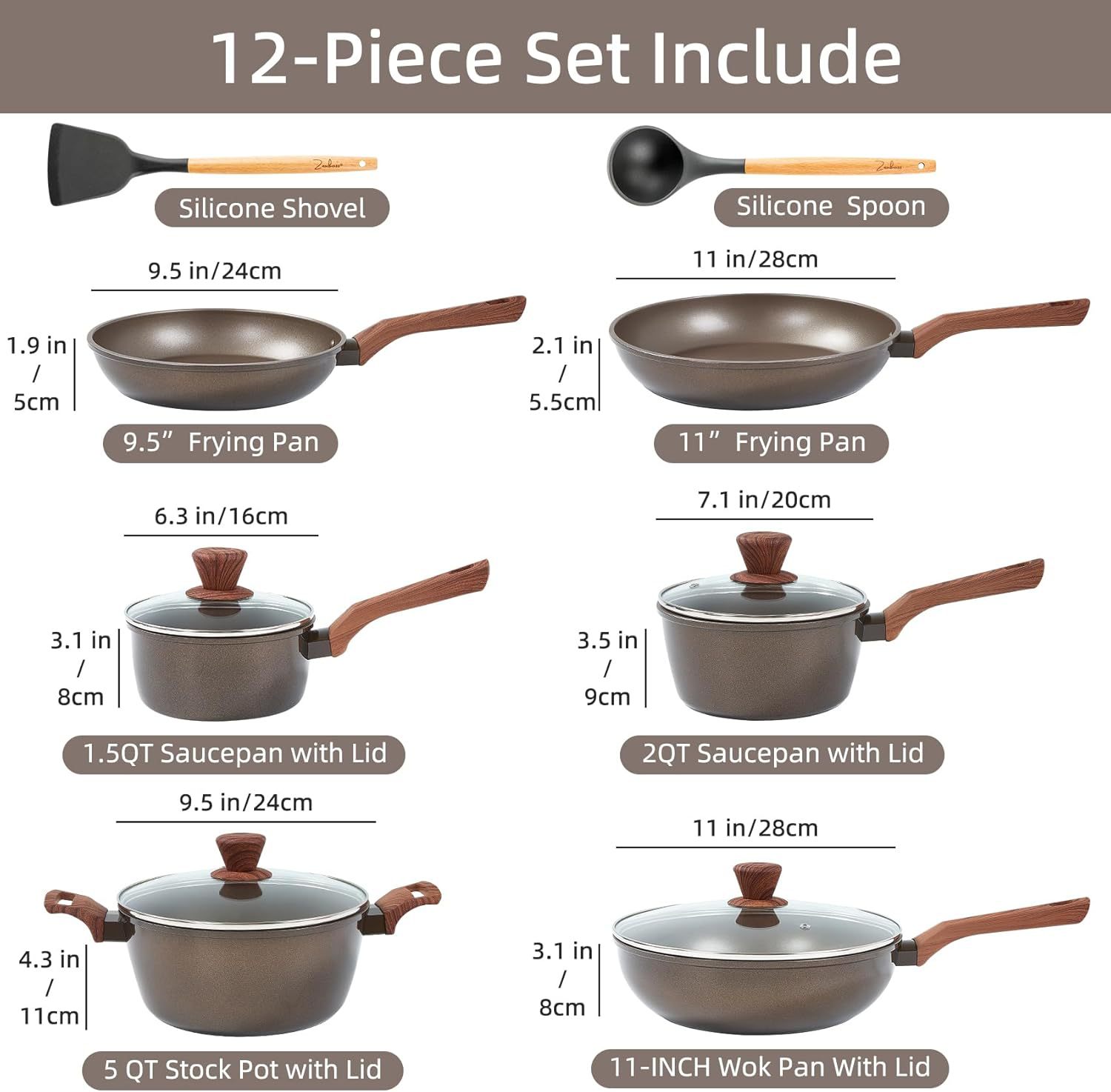 Venta caliente transfronteriza Imitación de aluminio Fundición a presión Juego de sartén antiadherente Juego clásico de 11 piezas Sartén Wok Juego de olla de sopa Cocina de inducción universal