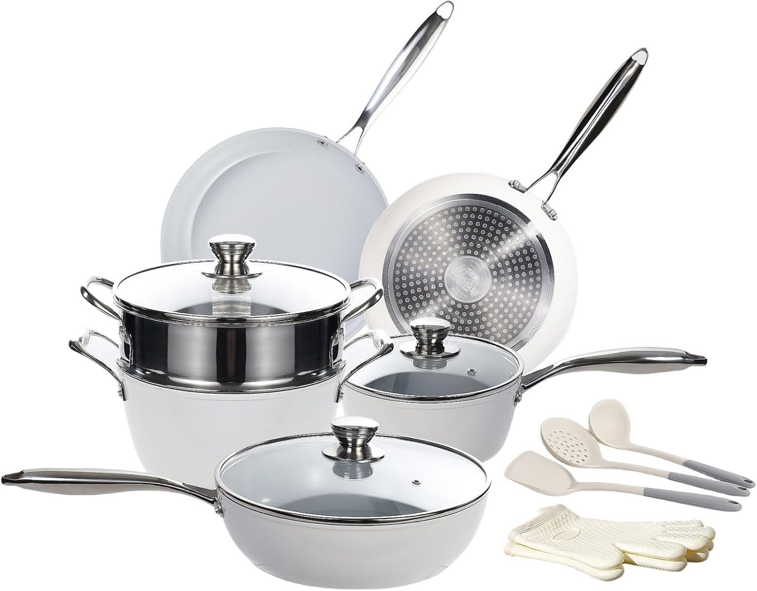 Conjunto de paneles de cerámica antiadherente conjunto completo de paneles de cocina de piso plano doméstico conjunto de cinco piezas de comercio exterior 12 piezas de cocina electromagnética