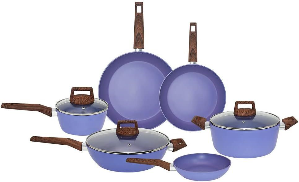 Juego de olla antiadherente de granito transfronterizo de 9 piezas Juego de olla morada para el hogar Juego de olla para freír olla de sopa olla de aluminio