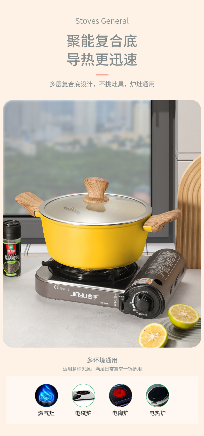 Yipinhong cocina de inducción sopa antiadherente olla hogar binaural maifan piedra sopa olla