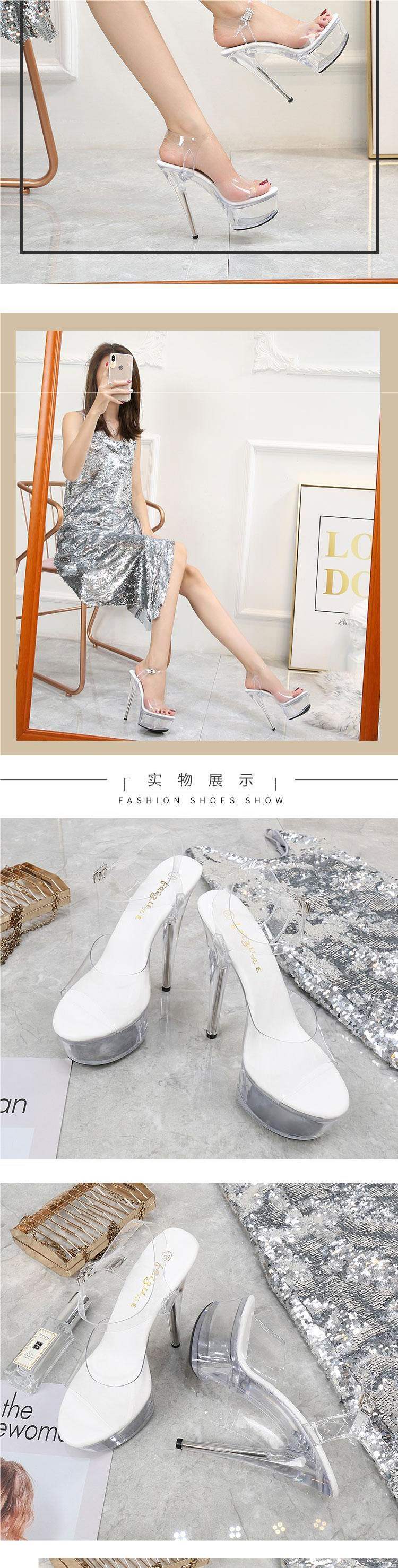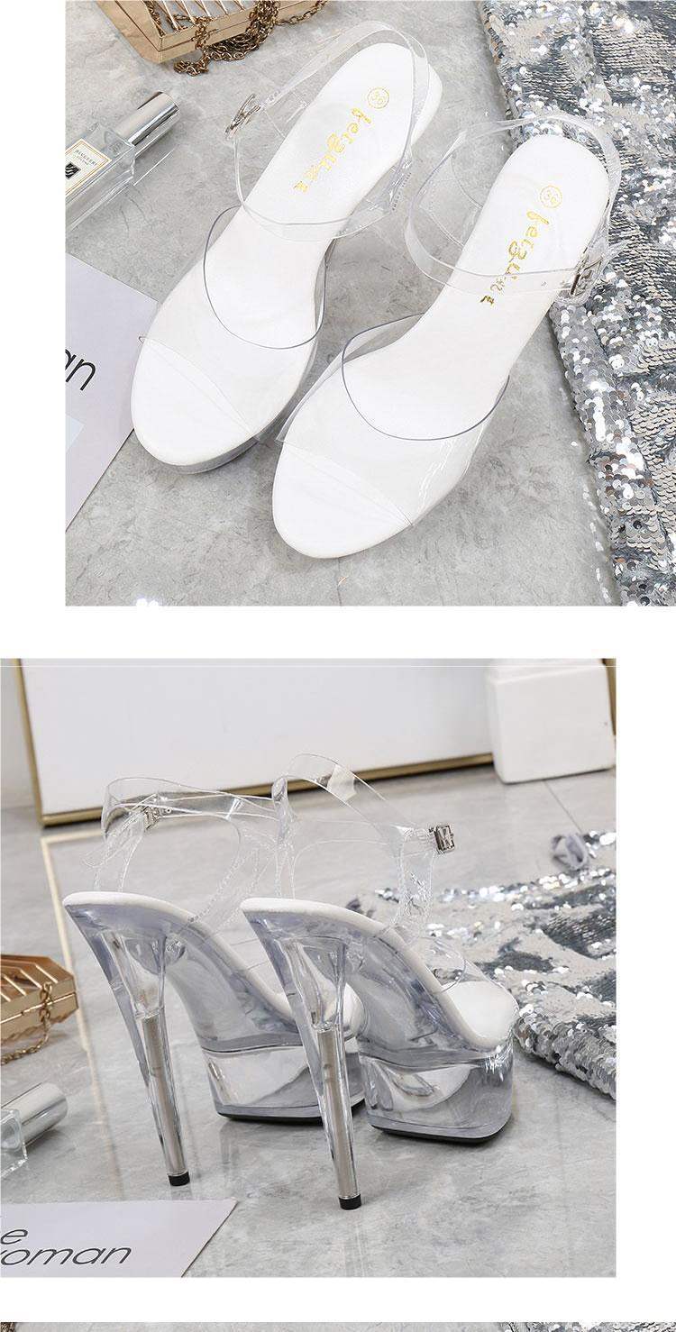 Discoteca pasarela banquete zapatos de mujer sexy plataforma transparente pole dance zapatos de cristal 15CM sandalias de tacón alto superfino