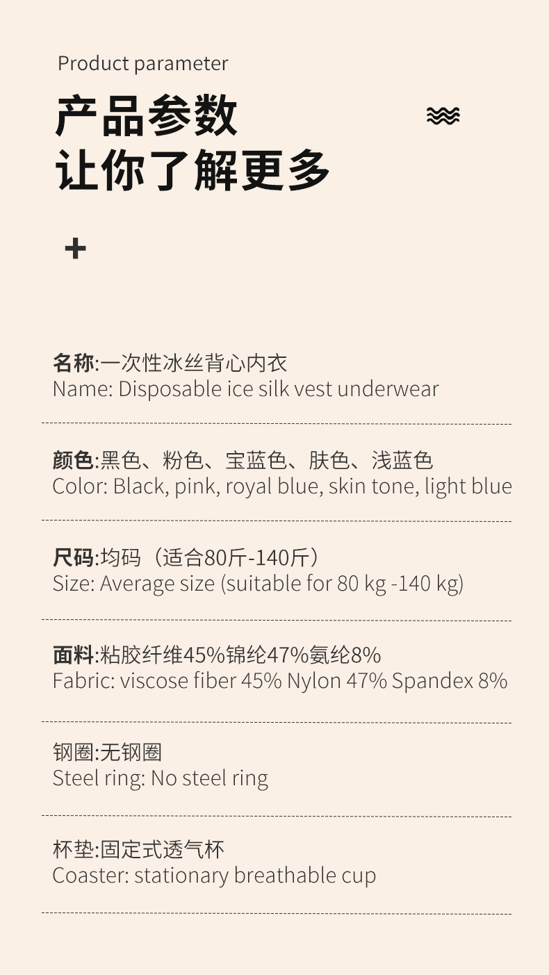| Colores | [Tirantes anchos para los hombros] Ropa interior Ice Silk, 30 piezas por semana,[Tirantes anchos para los hombros] Ropa interior Ice Silk, 7 piezas por semana,[Tirantes anchos para los hombros] Ropa interior de seda helada [Cinco colores mezclados],Rosa [correa ancha para el hombro],Color de piel [correa ancha para el hombro],Azul claro [correa ancha para el hombro],Azul grisáceo [bandolera ancha],Negro [correa ancha para el hombro] |