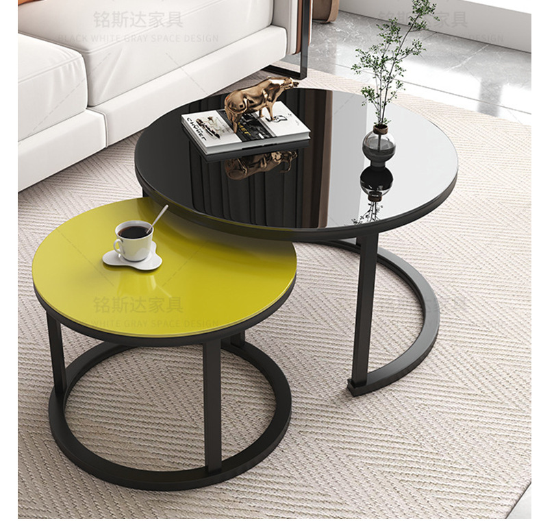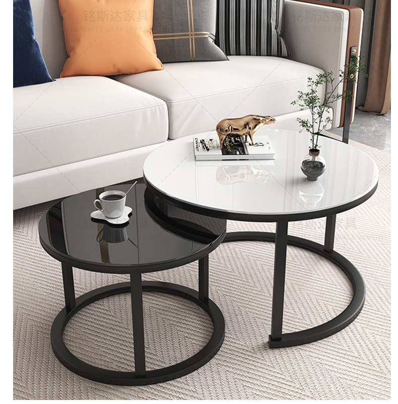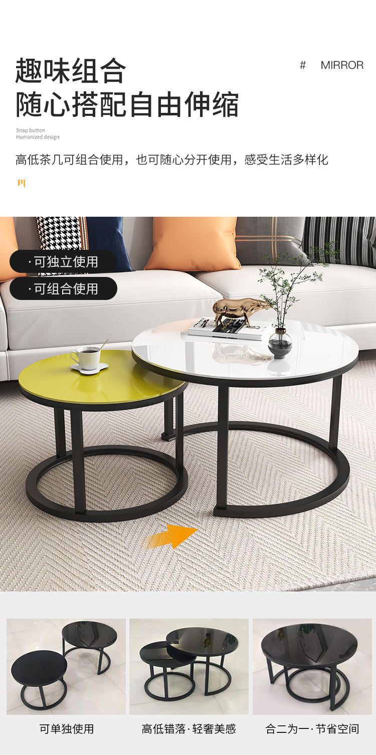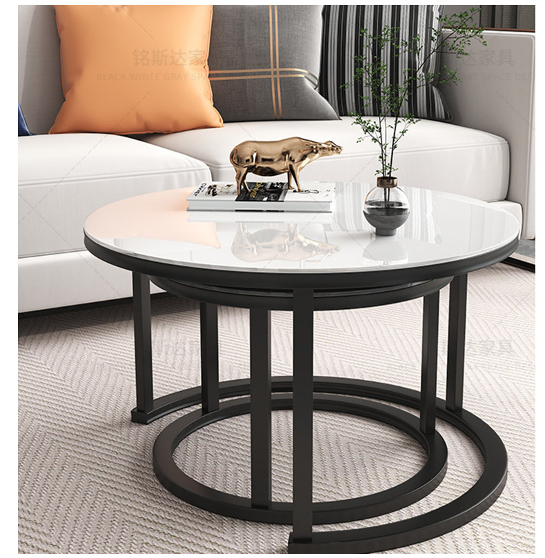 Mesa de centro para sala de estar, mesa nido de hierro forjado, moderna, sencilla, ligera y lujosa, adecuada para jóvenes, apartamento pequeño, mesa redonda extensible grande y pequeña.
