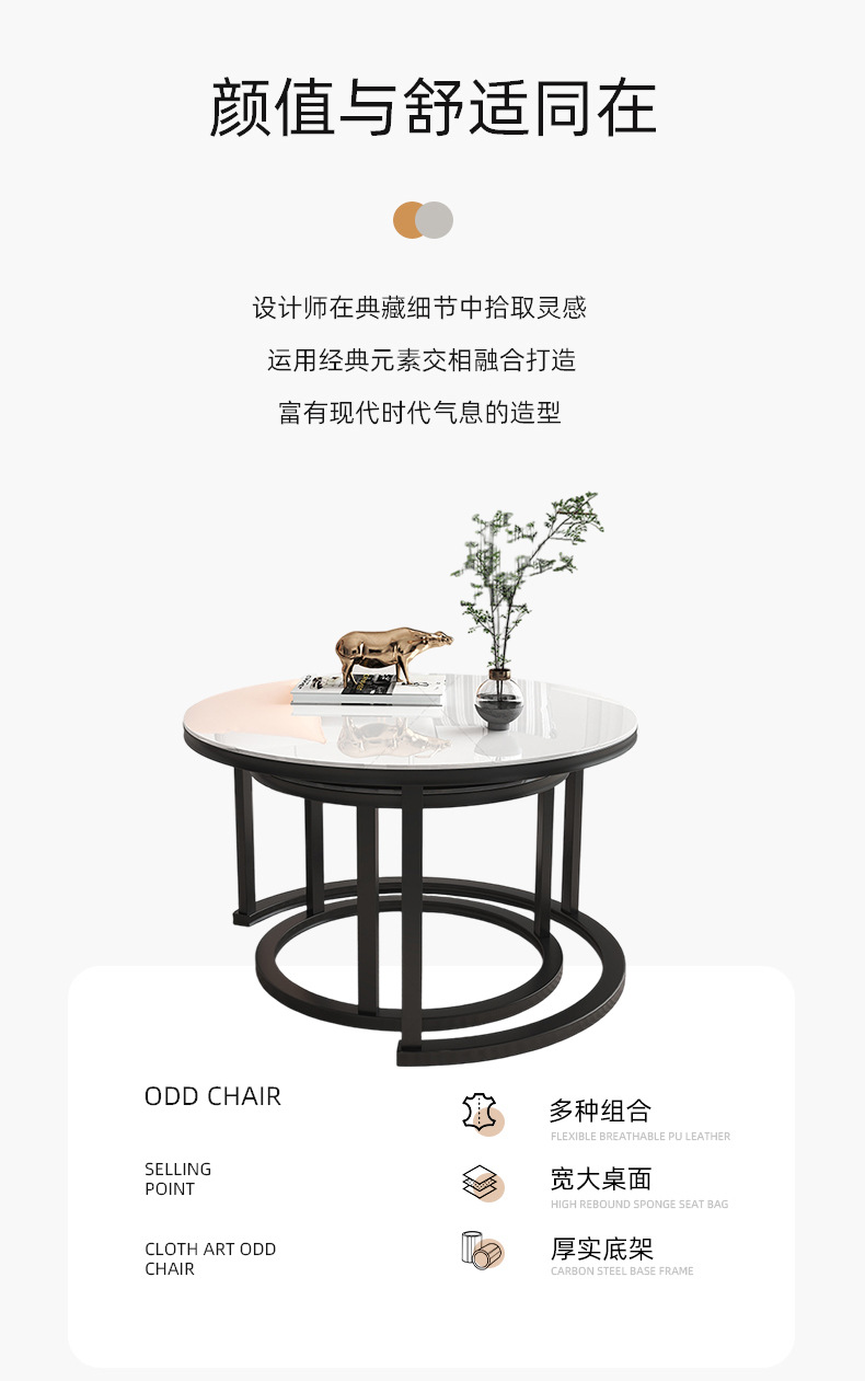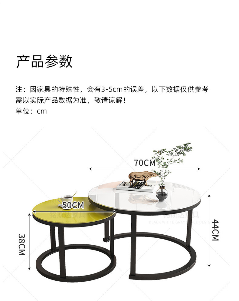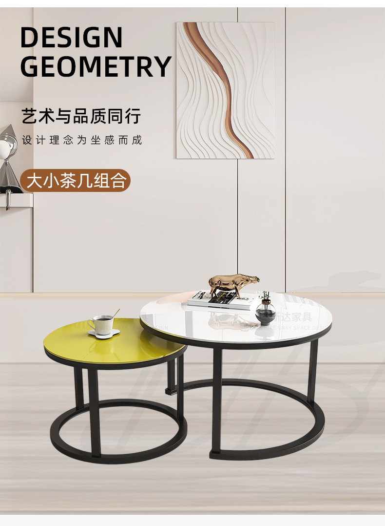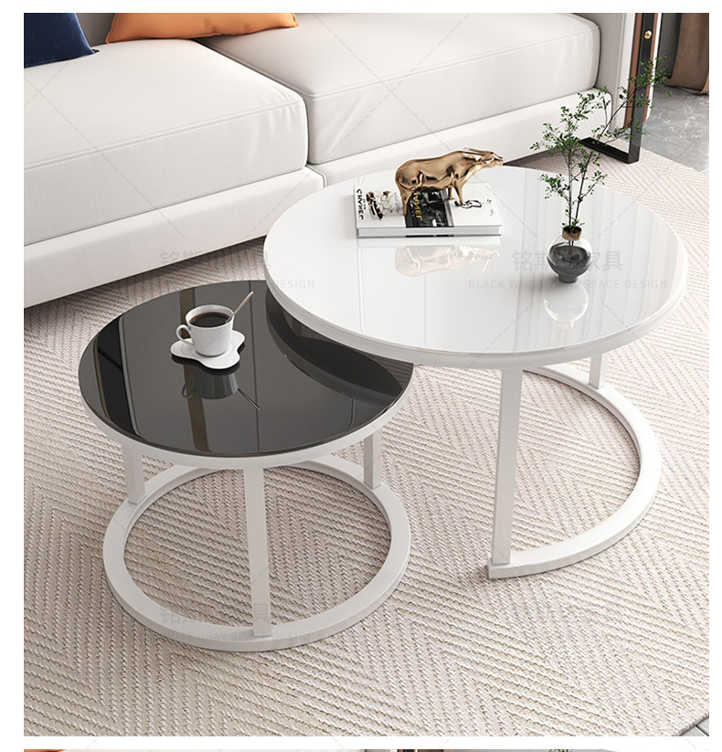 Mesa de centro para sala de estar, mesa nido de hierro forjado, moderna, sencilla, ligera y lujosa, adecuada para jóvenes, apartamento pequeño, mesa redonda extensible grande y pequeña.