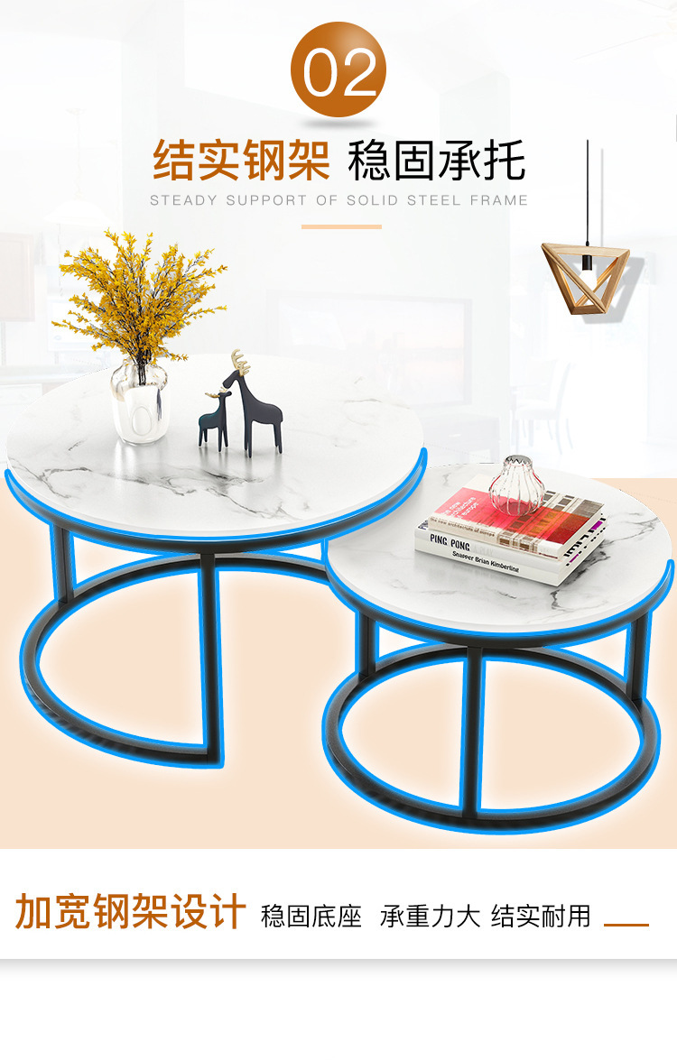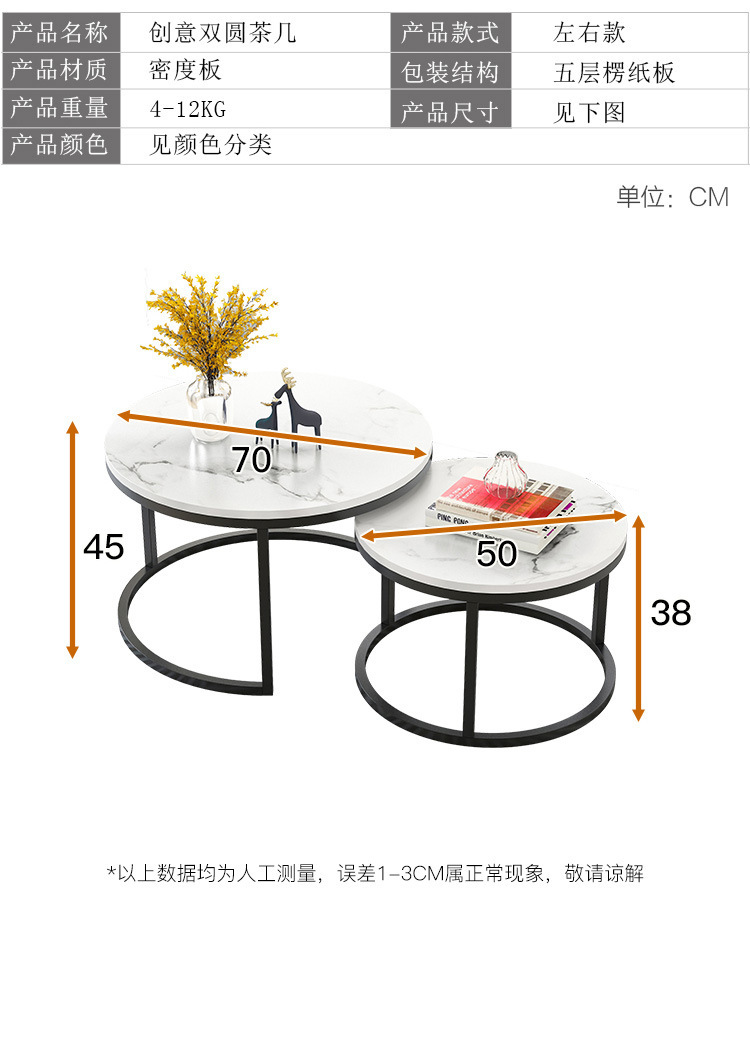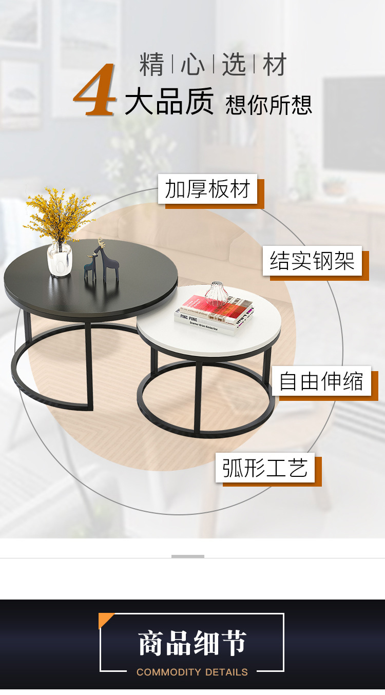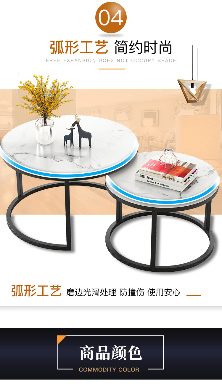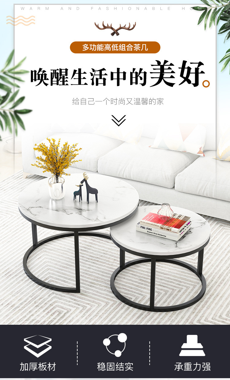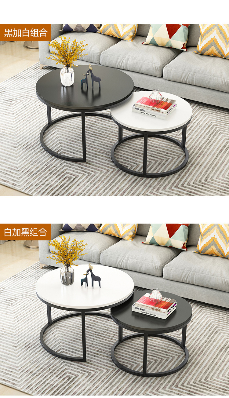 Mesa de centro pequeña, arte de hierro, apartamento pequeño moderno simple, sala de estar, hogar, mesa redonda creativa, red roja, mesa de centro de combinación de lujo ligera