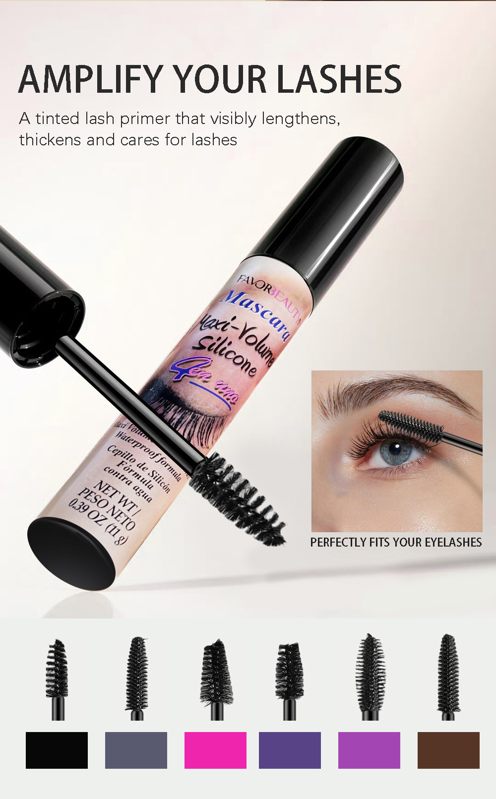 Mascara impermeable ligera rizada estereoscópica base no aglomerada transfronteriza Amazon maquillaje venta caliente