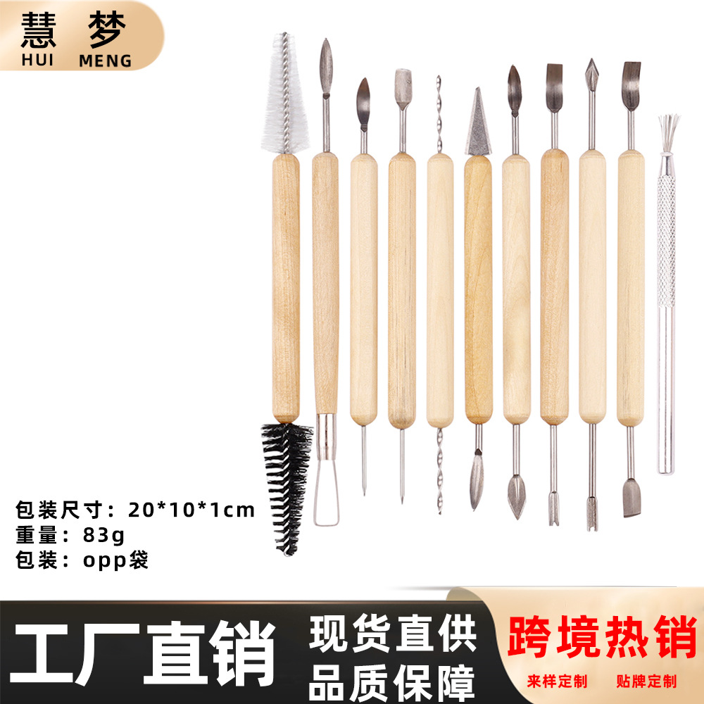 Herramientas de cerámica transfronterizas de acero inoxidable bola varilla de piedra plástica arcilla conjunto de barro de cerámica herramientas manuales escultura cuchillo penetración