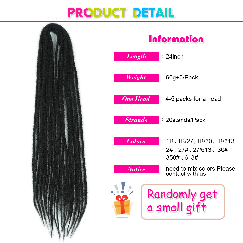 Peluca de trenzas sucias de doble cola europea y americana, pelo largo y liso, pelo de ganchillo, hip-hop, trenza de reggae, bolsa de anillo jamaicana, dreadlocs