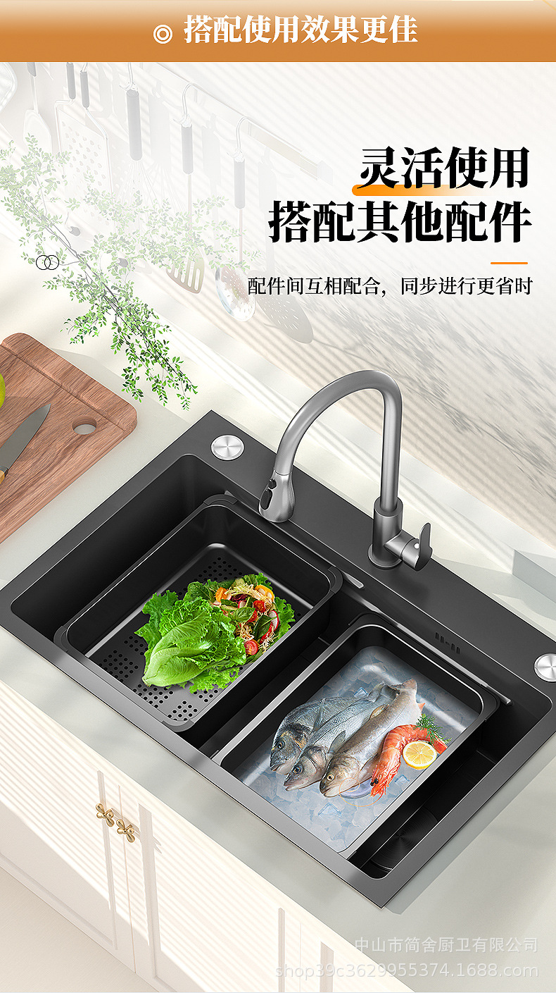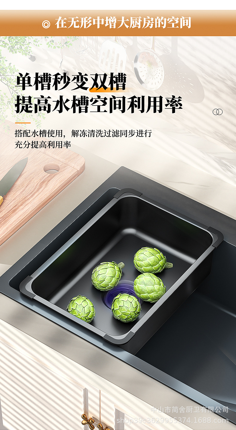 Cesta de drenaje de acero inoxidable lavabo de cocina lavabo de verduras lavabo de un solo tanque gran platos de filtro de agua