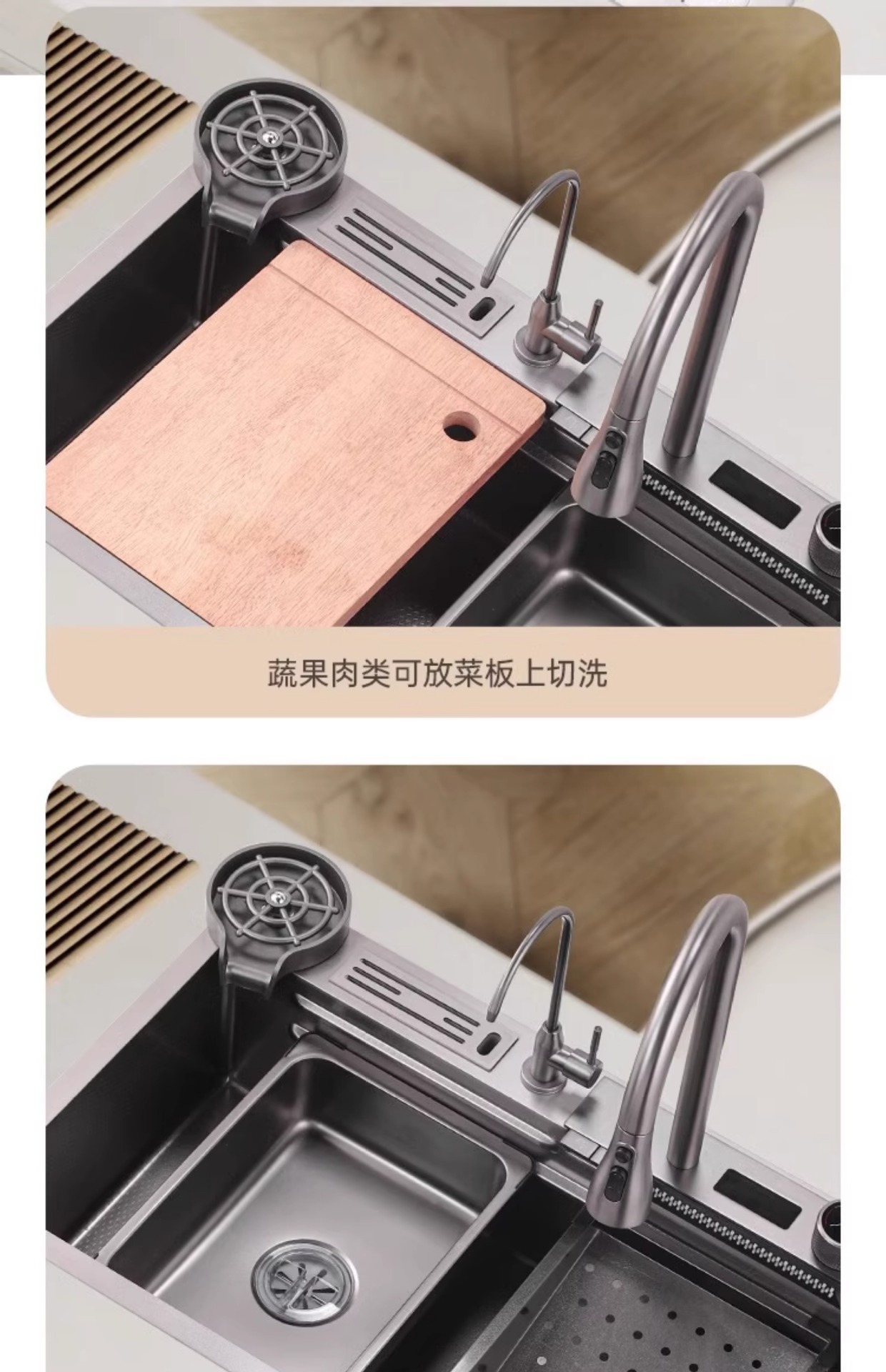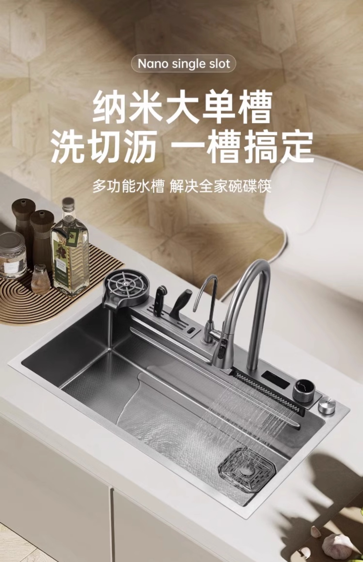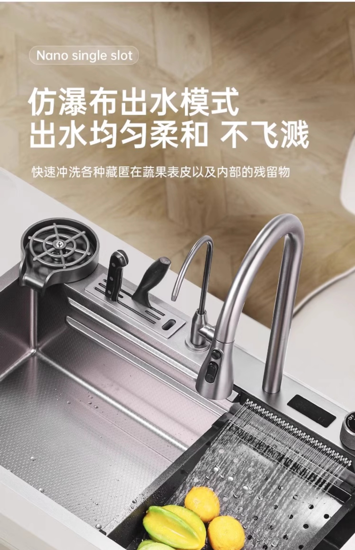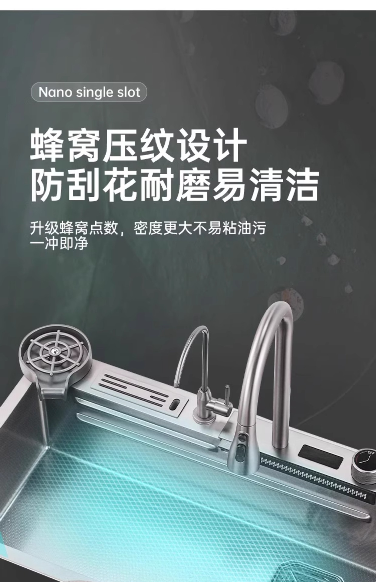 304 acero inoxidable gran tanque de una sola pantalla de agua de agua de cascada de lluvia en relieve de panal lavavajillas de cocina lavavajillas manuales