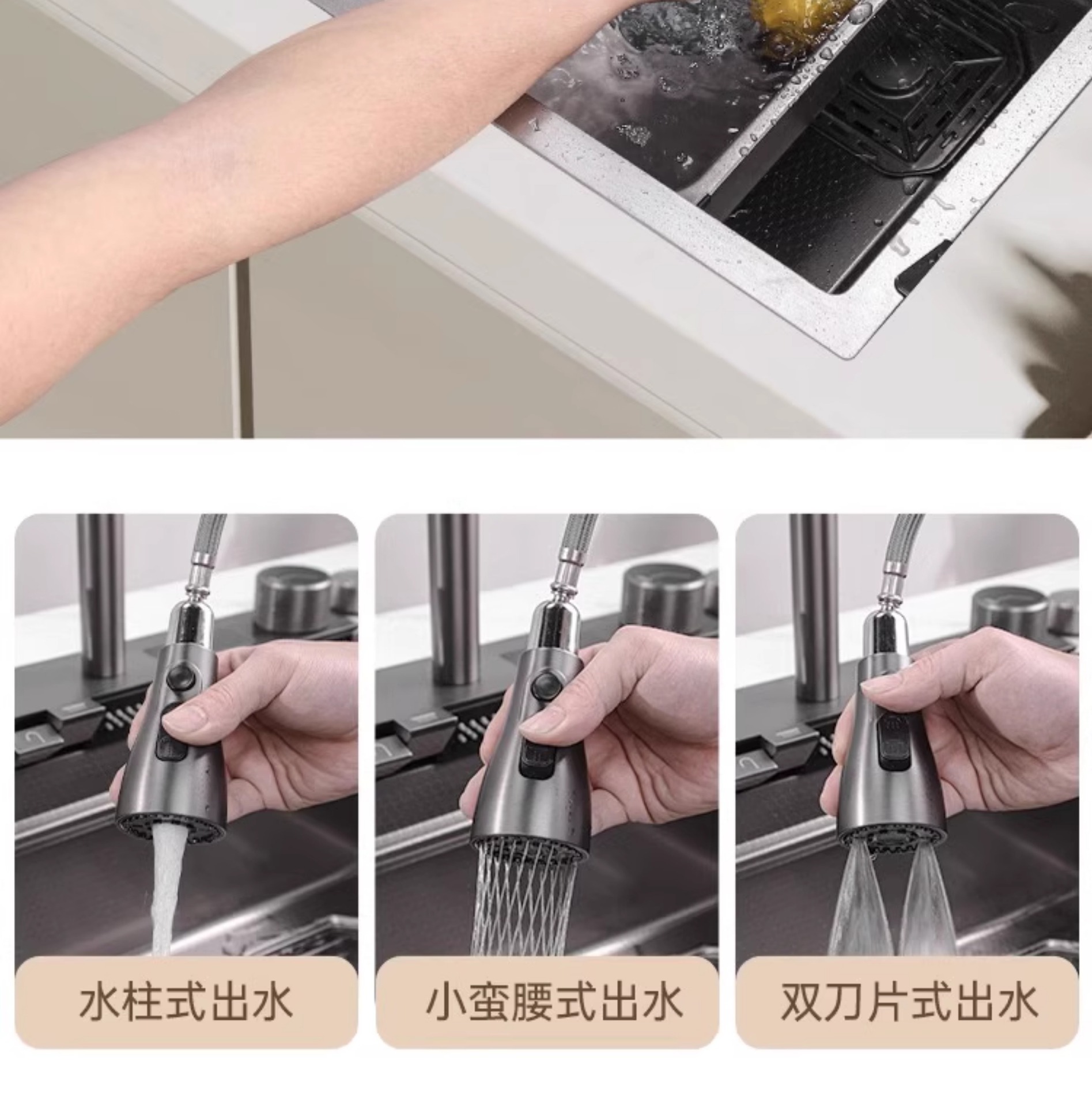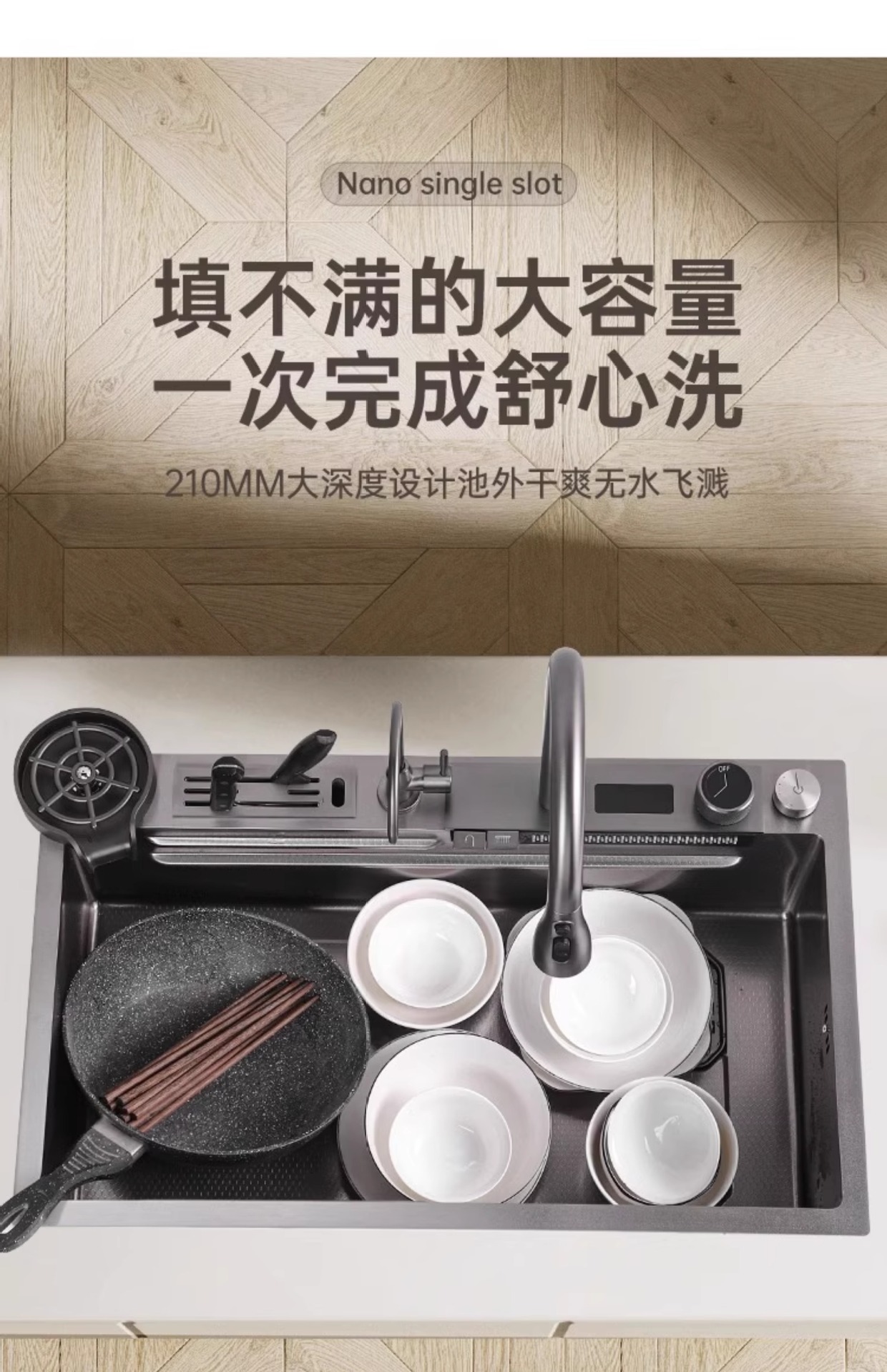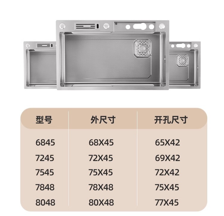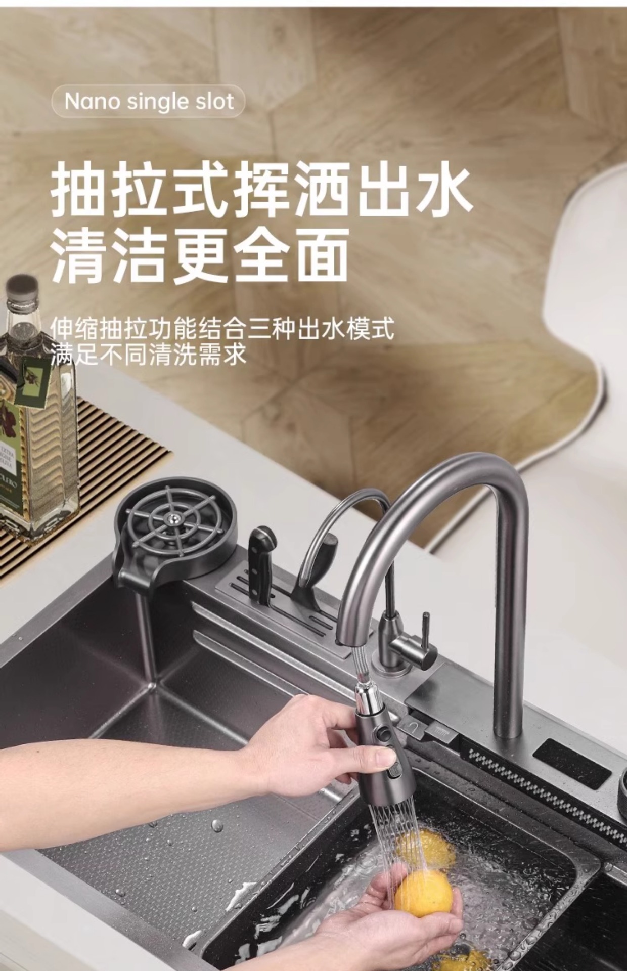 304 acero inoxidable gran tanque de una sola pantalla de agua de agua de cascada de lluvia en relieve de panal lavavajillas de cocina lavavajillas manuales