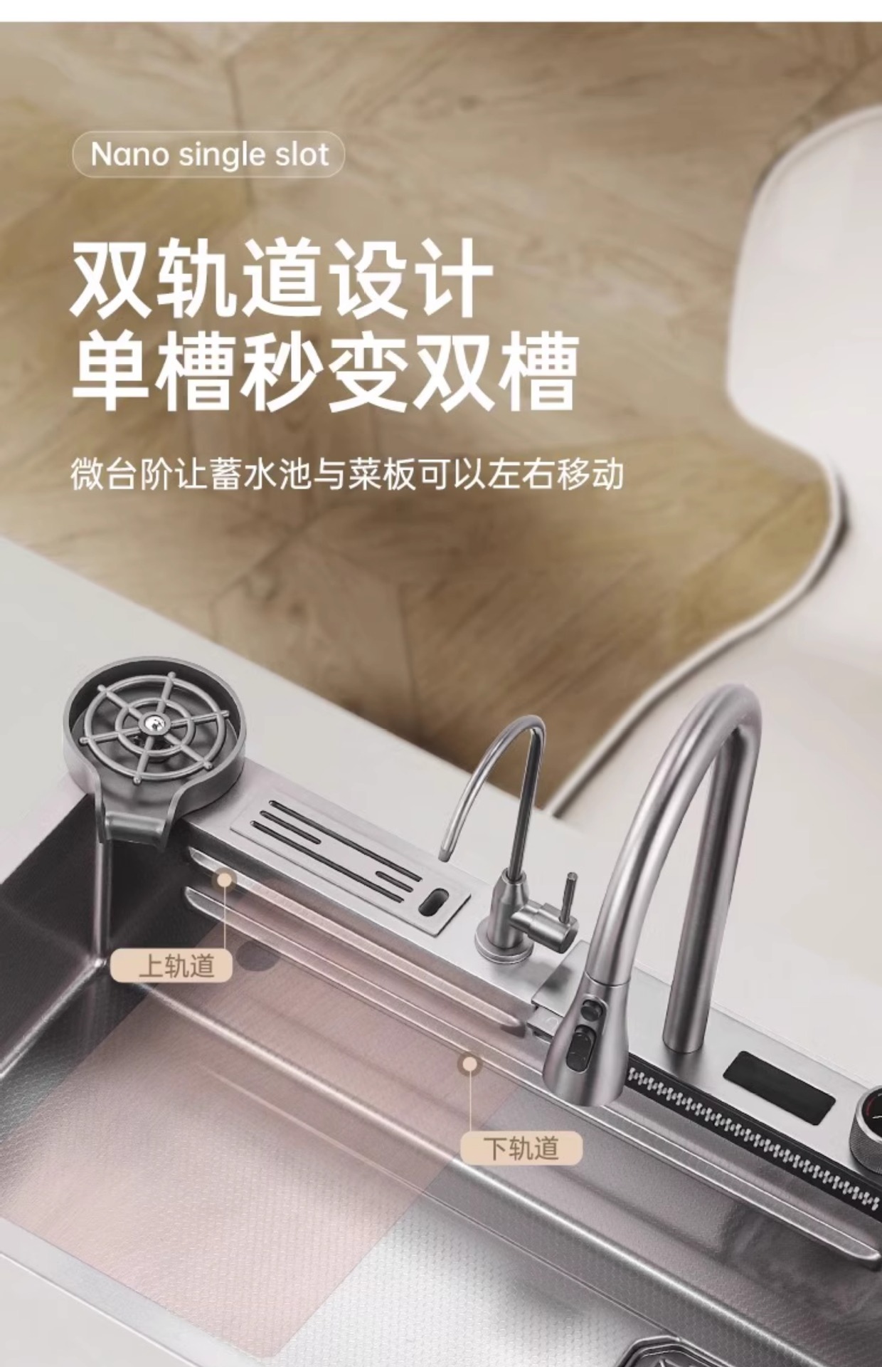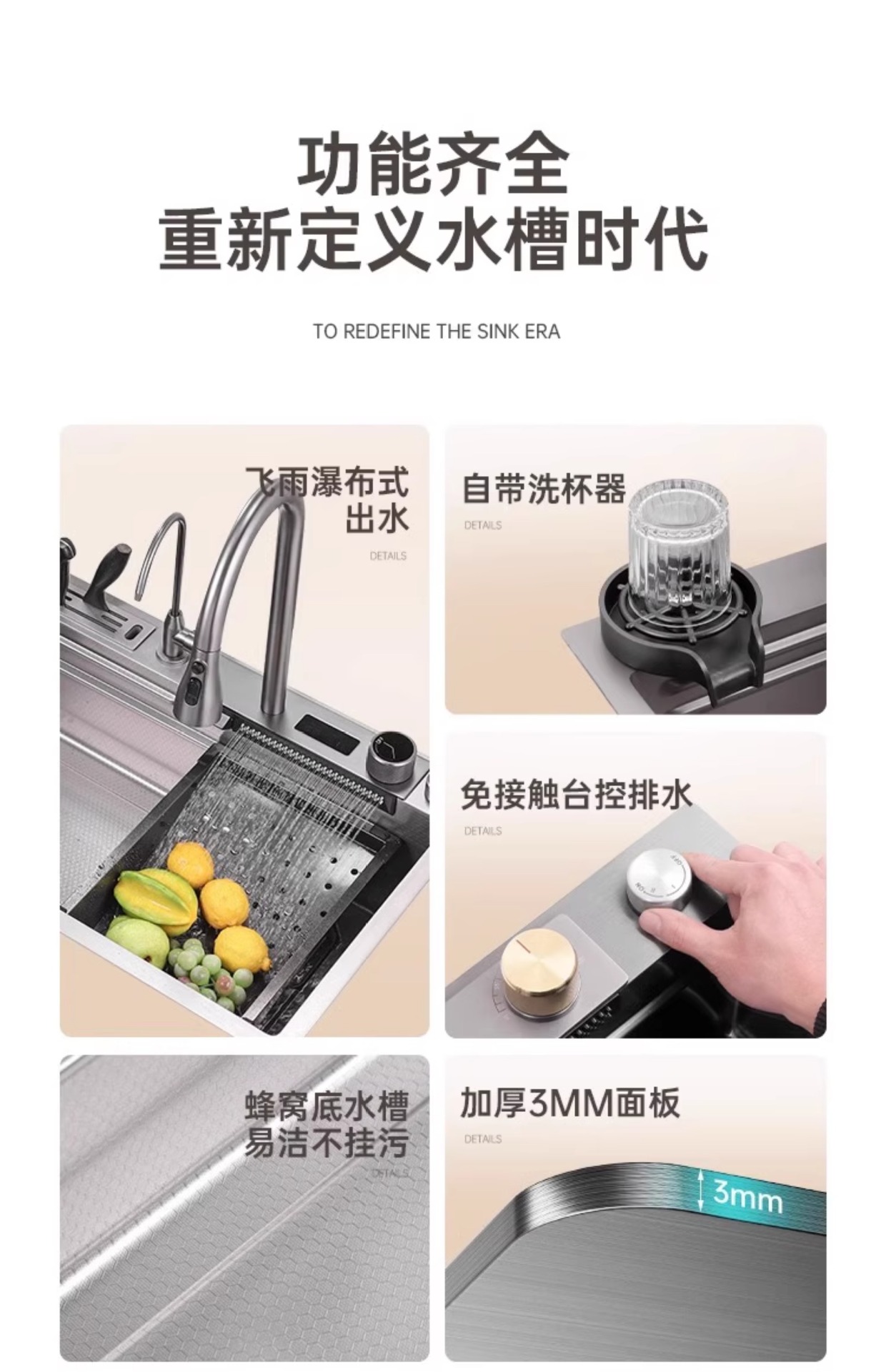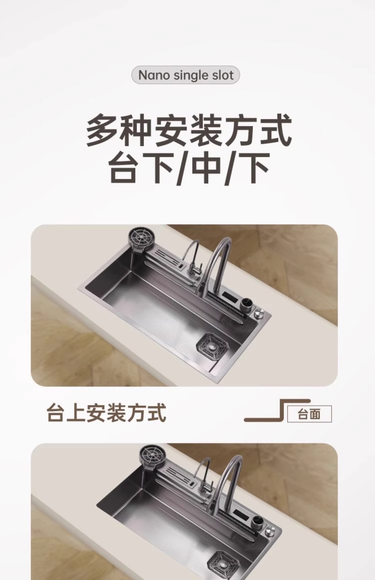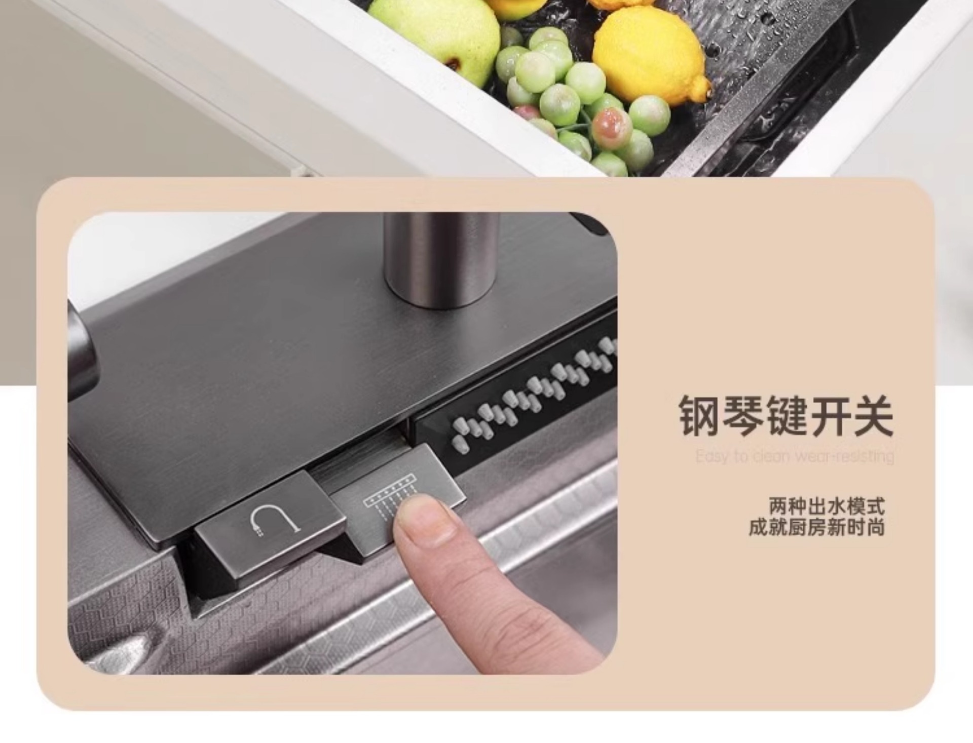 304 acero inoxidable gran tanque de una sola pantalla de agua de agua de cascada de lluvia en relieve de panal lavavajillas de cocina lavavajillas manuales