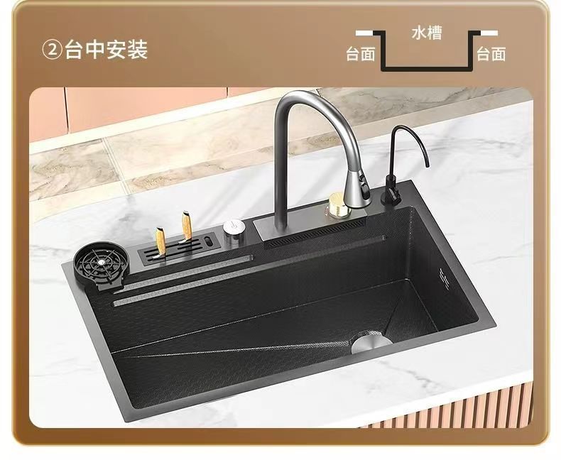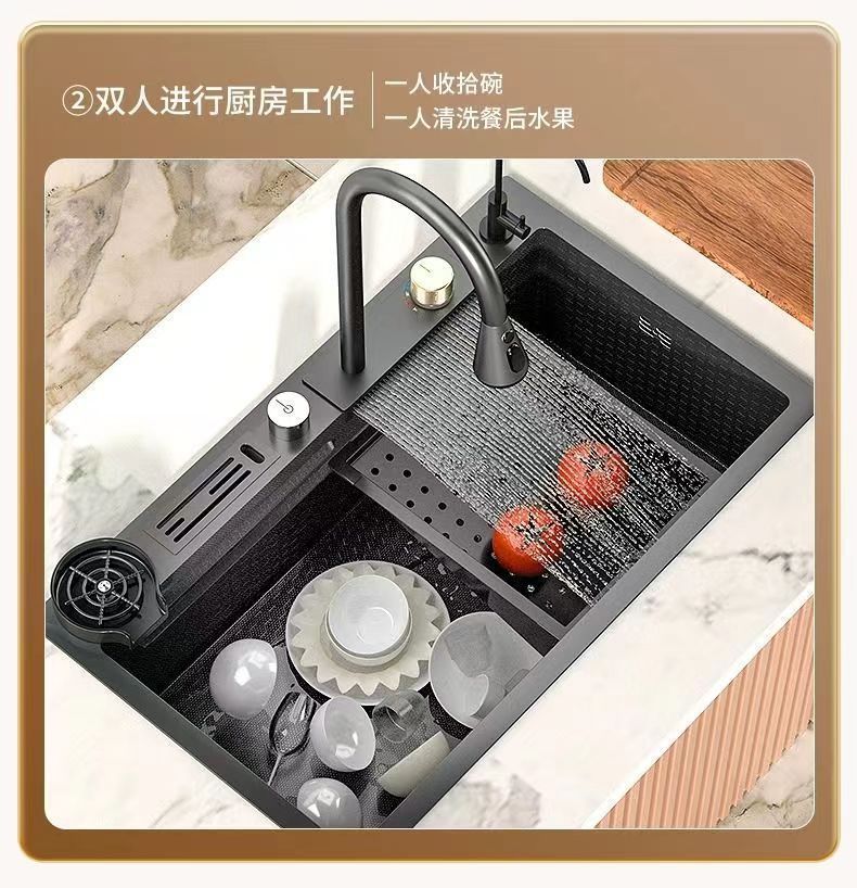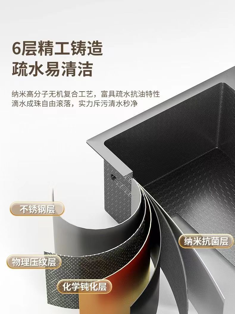 Nano Gun Grey 304 acero inoxidable gran tanque de cocina doméstica lavavajillas un conjunto completo de lavavajillas