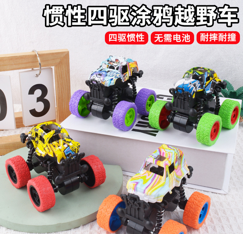 Inercia cuatro tracción graffiti coche todoterreno juguete coche de niños modelo de simulación coche de acrobacias de caída al por mayor