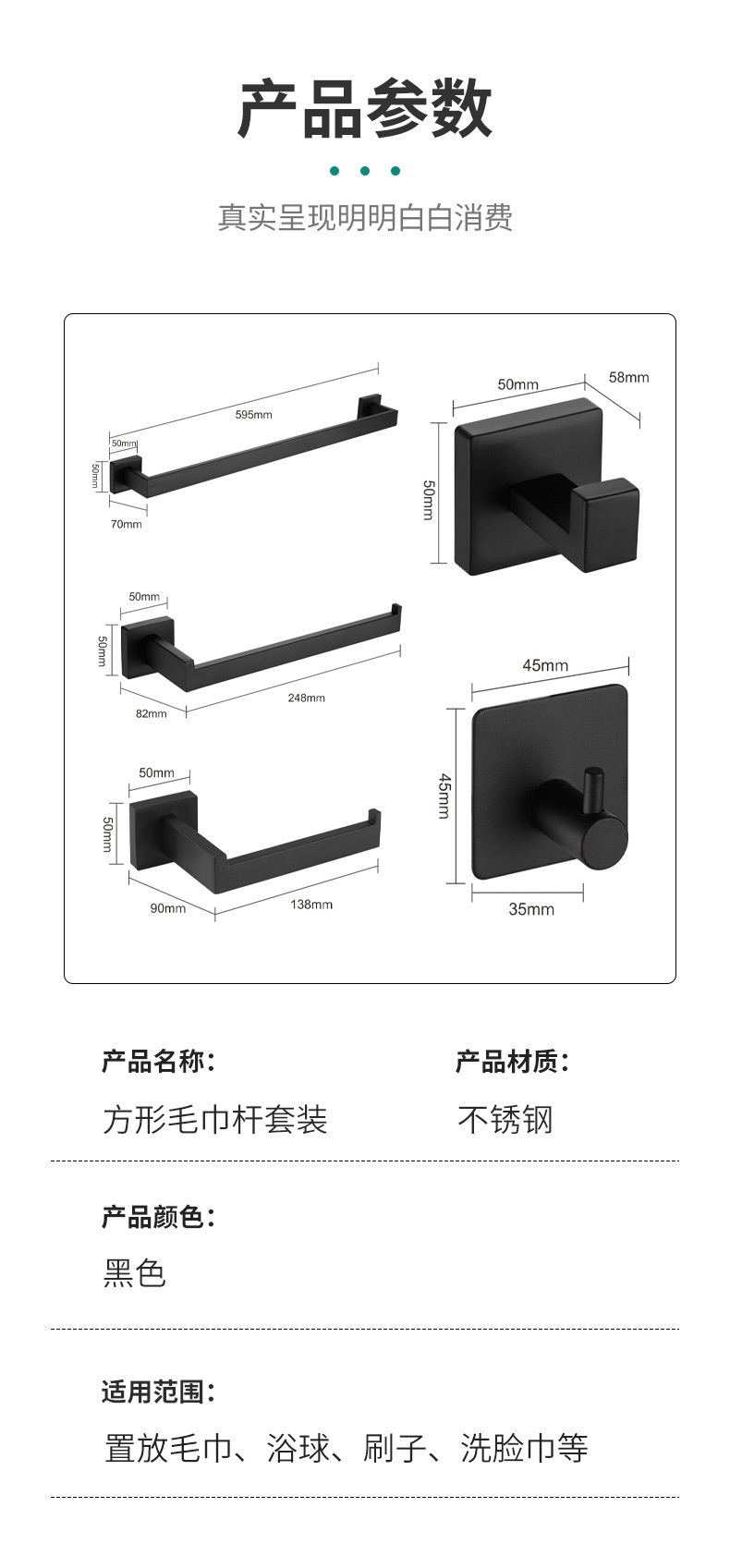 Barra de toalla transfronteriza 304 barra de toalla de acero inoxidable gancho de toalla de baño gancho de toalla de baño moderno y minimalista