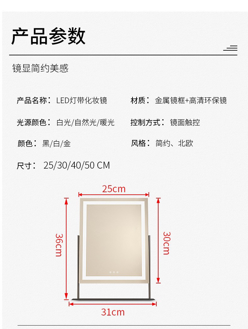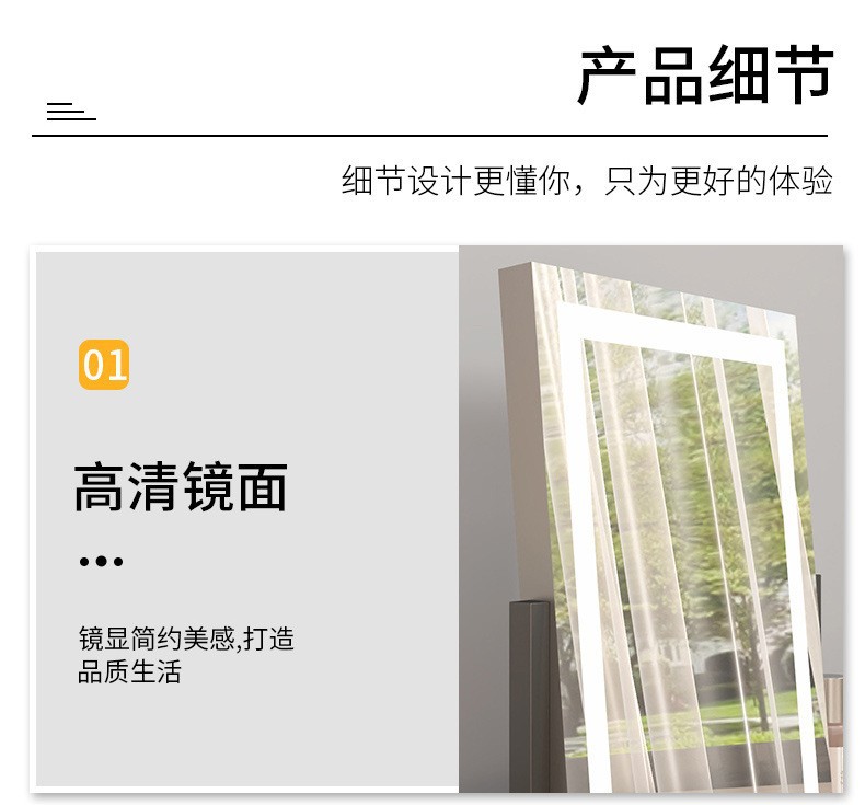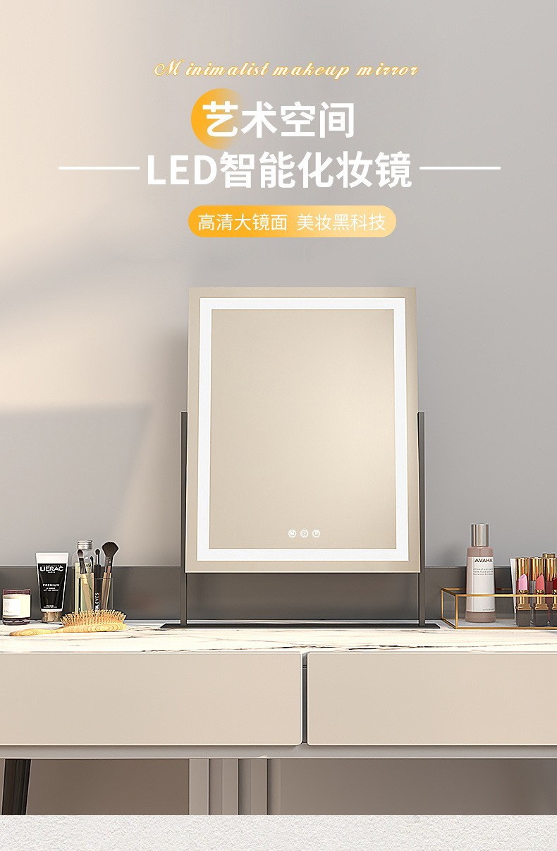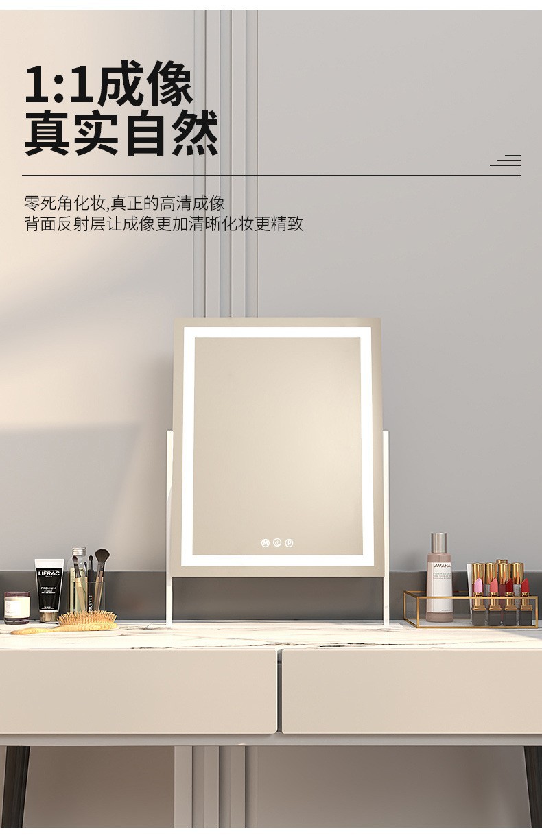 Espejo de maquillaje portátil para el hogar espejo de escritorio dormitorio en línea de alto nivel para estudiantes lujosos led dormitorio especial