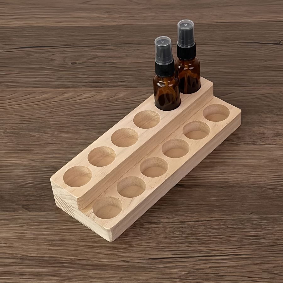 Fábrica de madera botella de aceite esencial botella de esmalte de uñas almacenamiento estante de exhibición caja de madera artesanía de madera