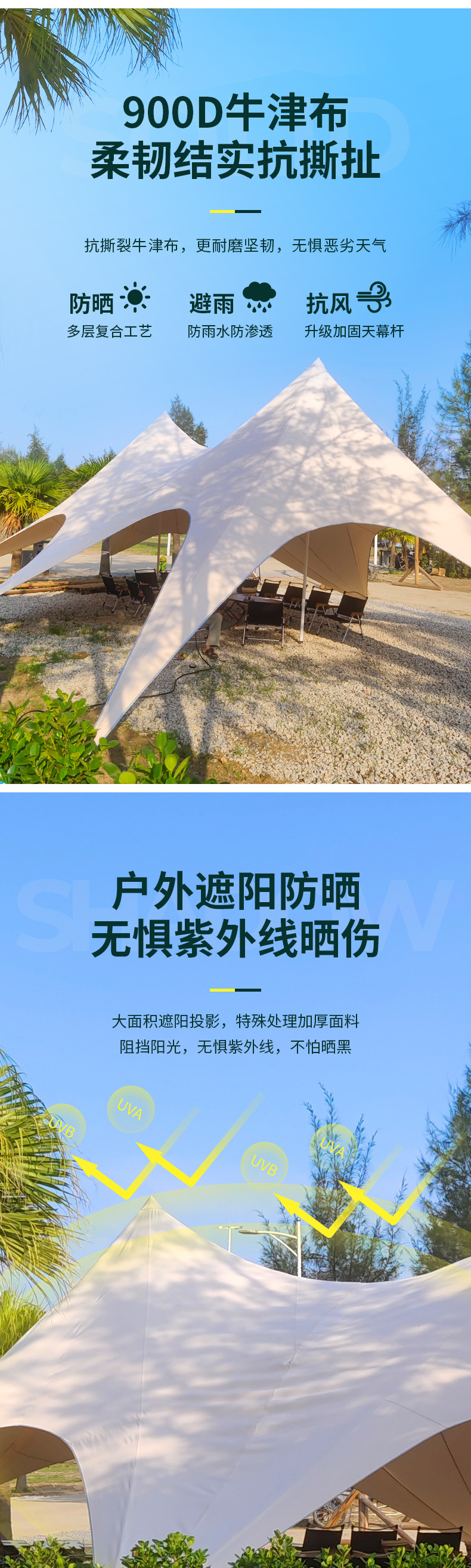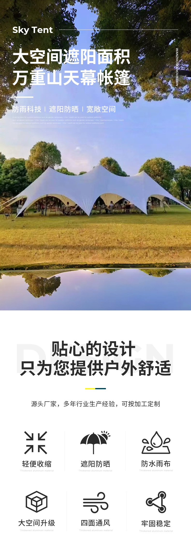 Campamento especial de fábrica de venta directa gran sombra solar a prueba de lluvia tienda de techo tres picos Wanchongshan doble pico un solo pico