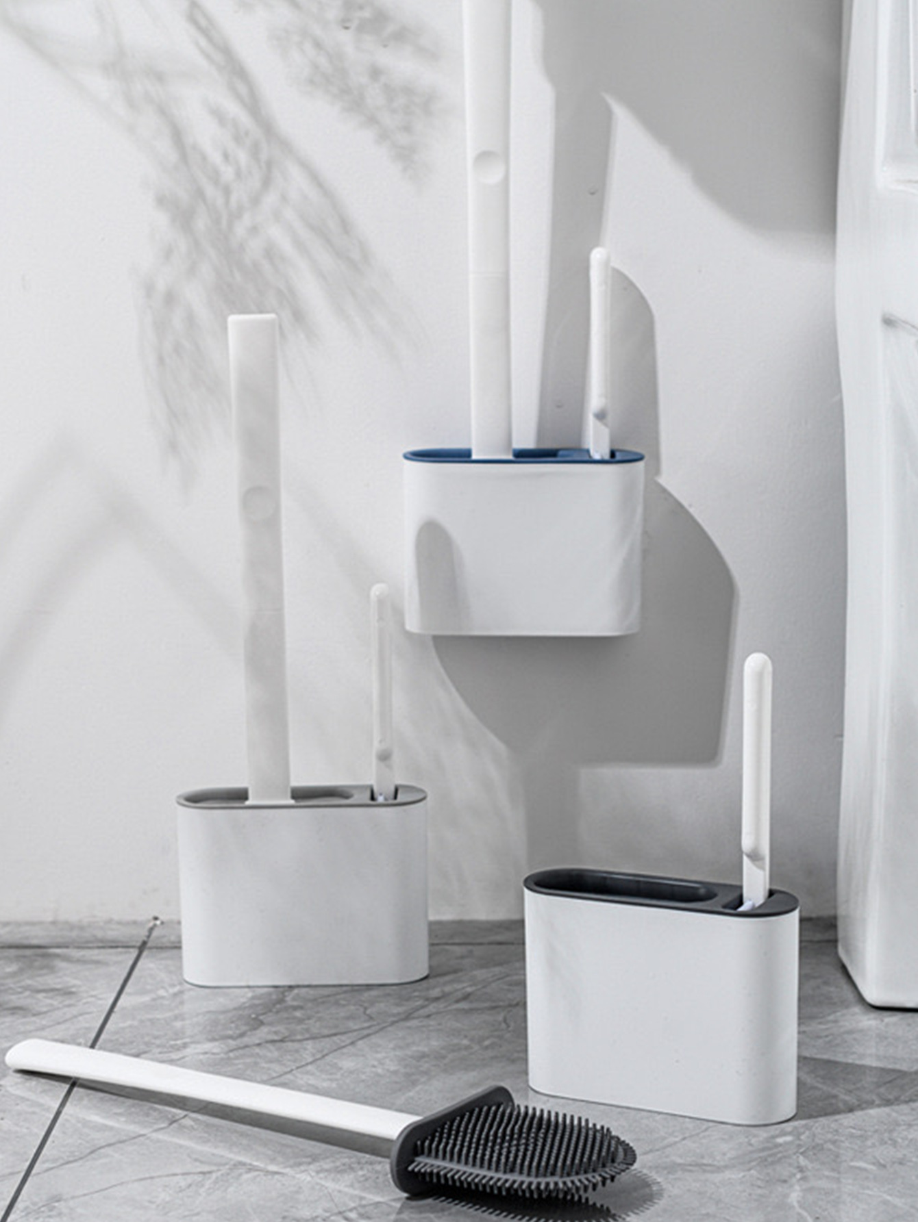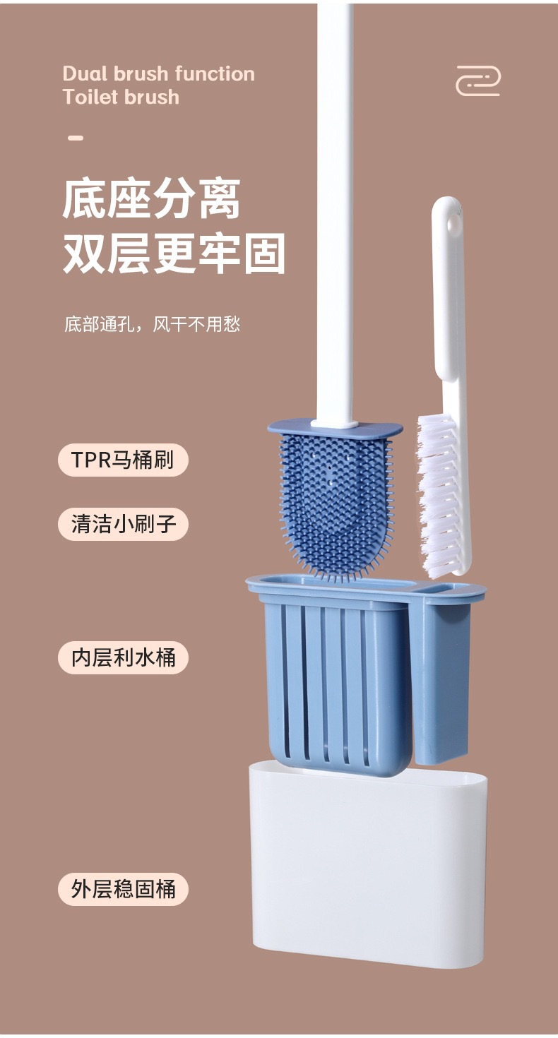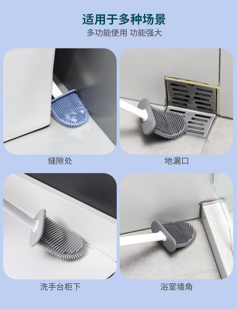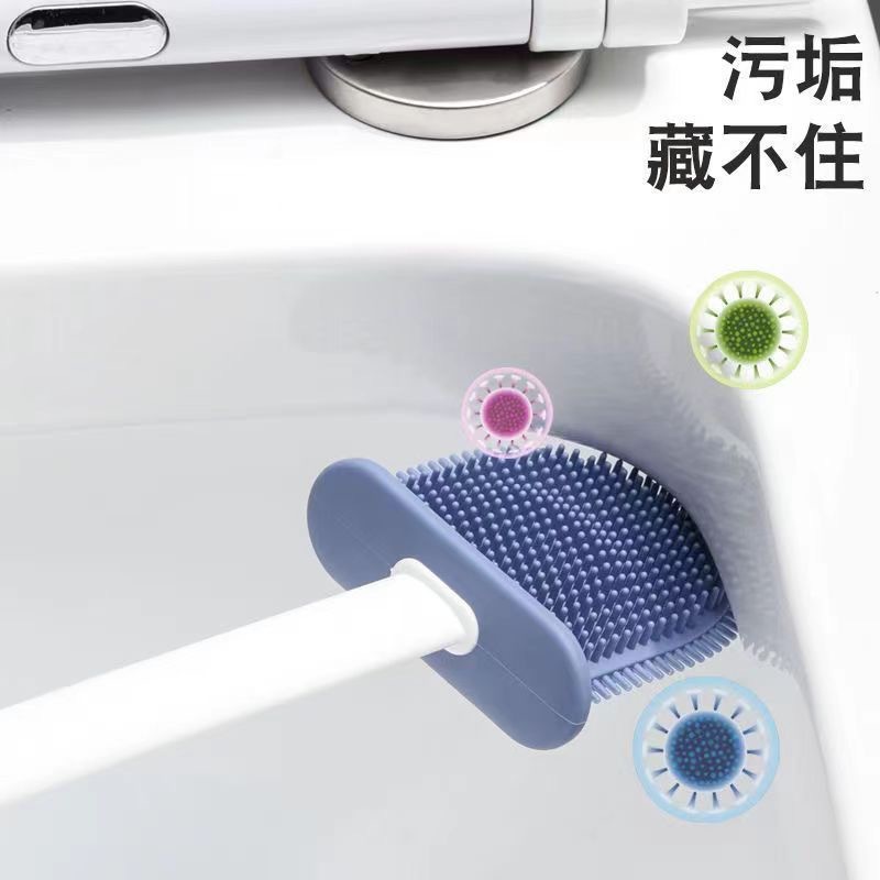 Cepillo de inodoro de silicona con asiento base cepillo de pared de mango largo silicona inodoro doméstico sin esquina muerta artefacto de limpieza