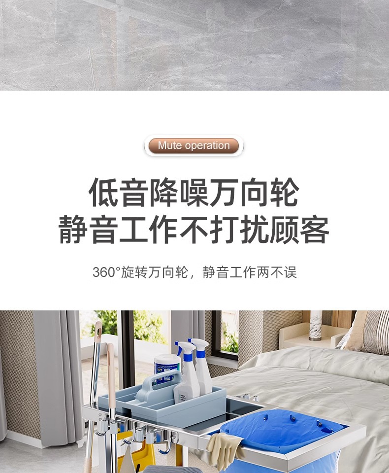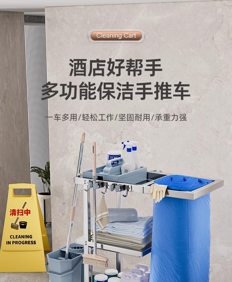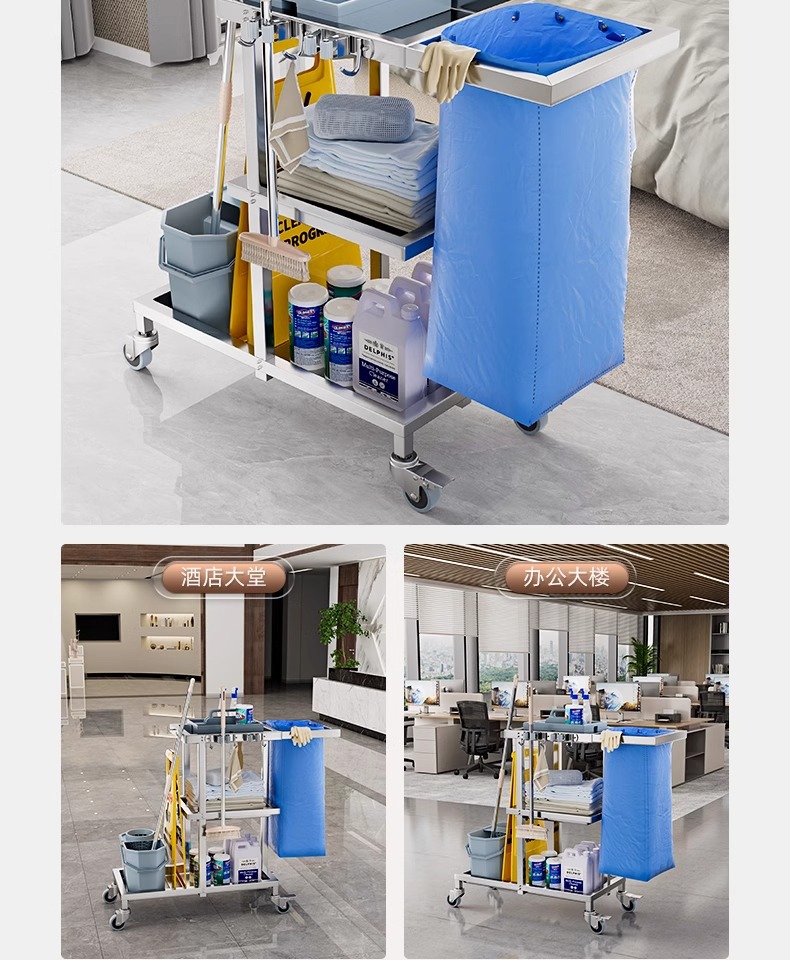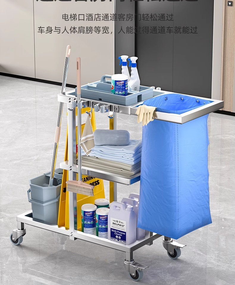 Carrito de limpieza de acero inoxidable para habitaciones de hotel carrito de paja multifuncional para limpieza de propiedad carrito de limpieza especial