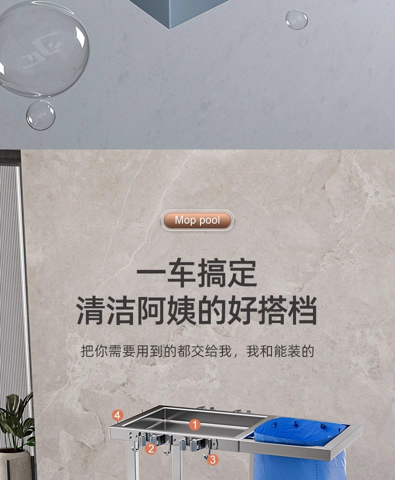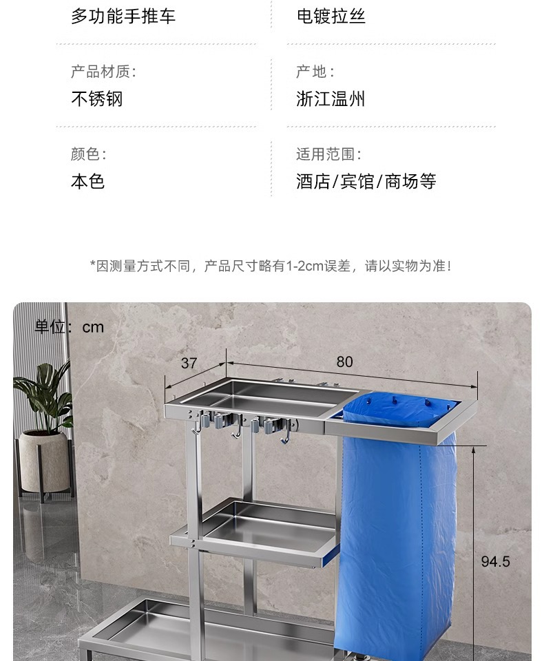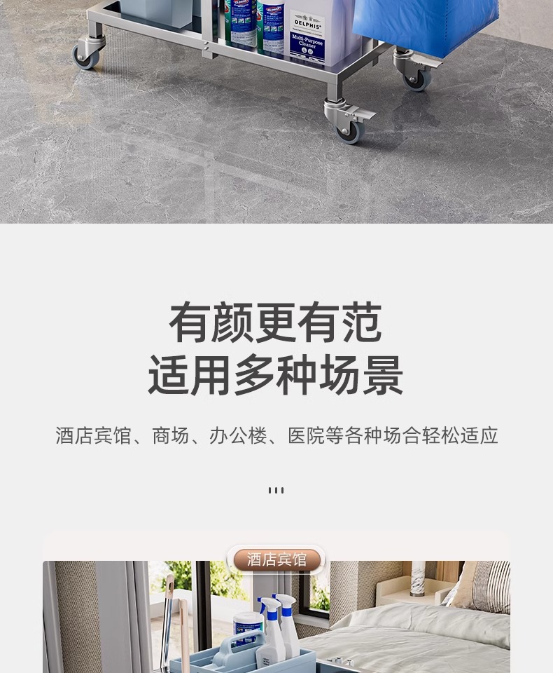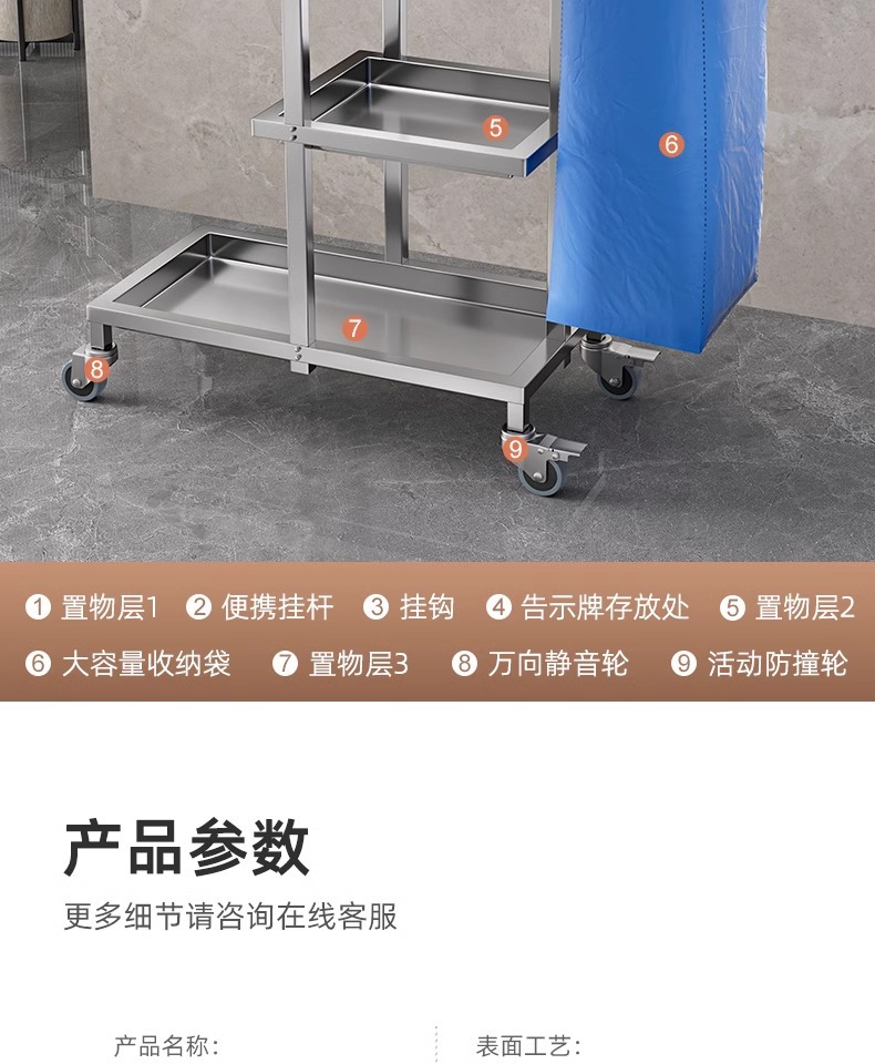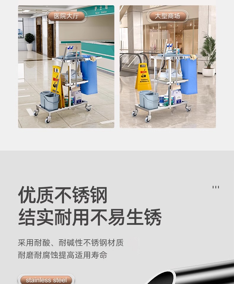 Carrito de limpieza de acero inoxidable para habitaciones de hotel carrito de paja multifuncional para limpieza de propiedad carrito de limpieza especial