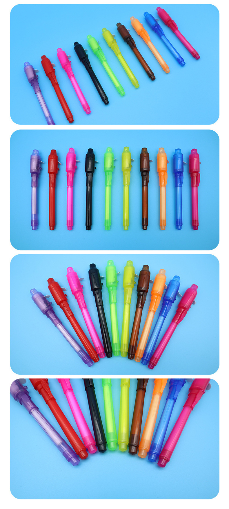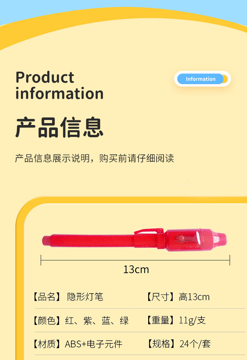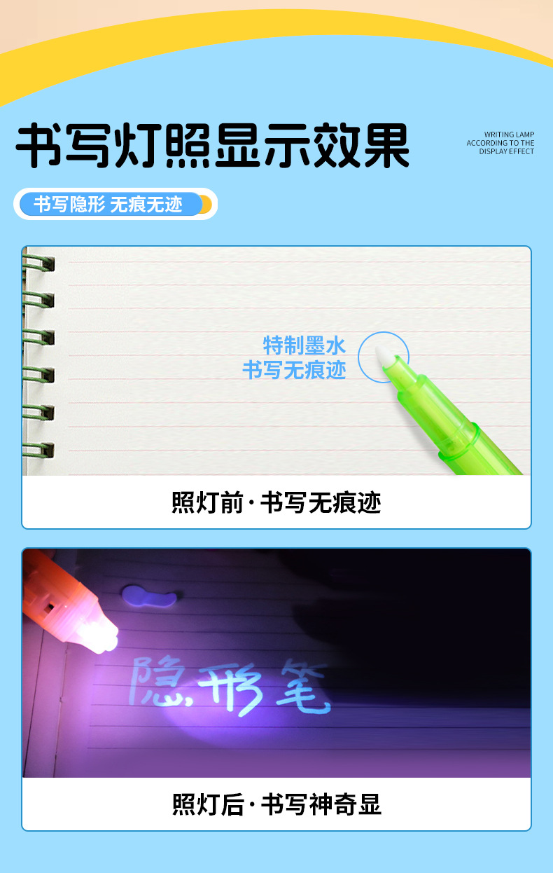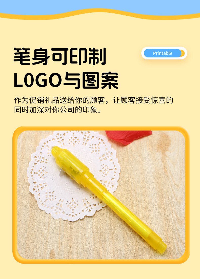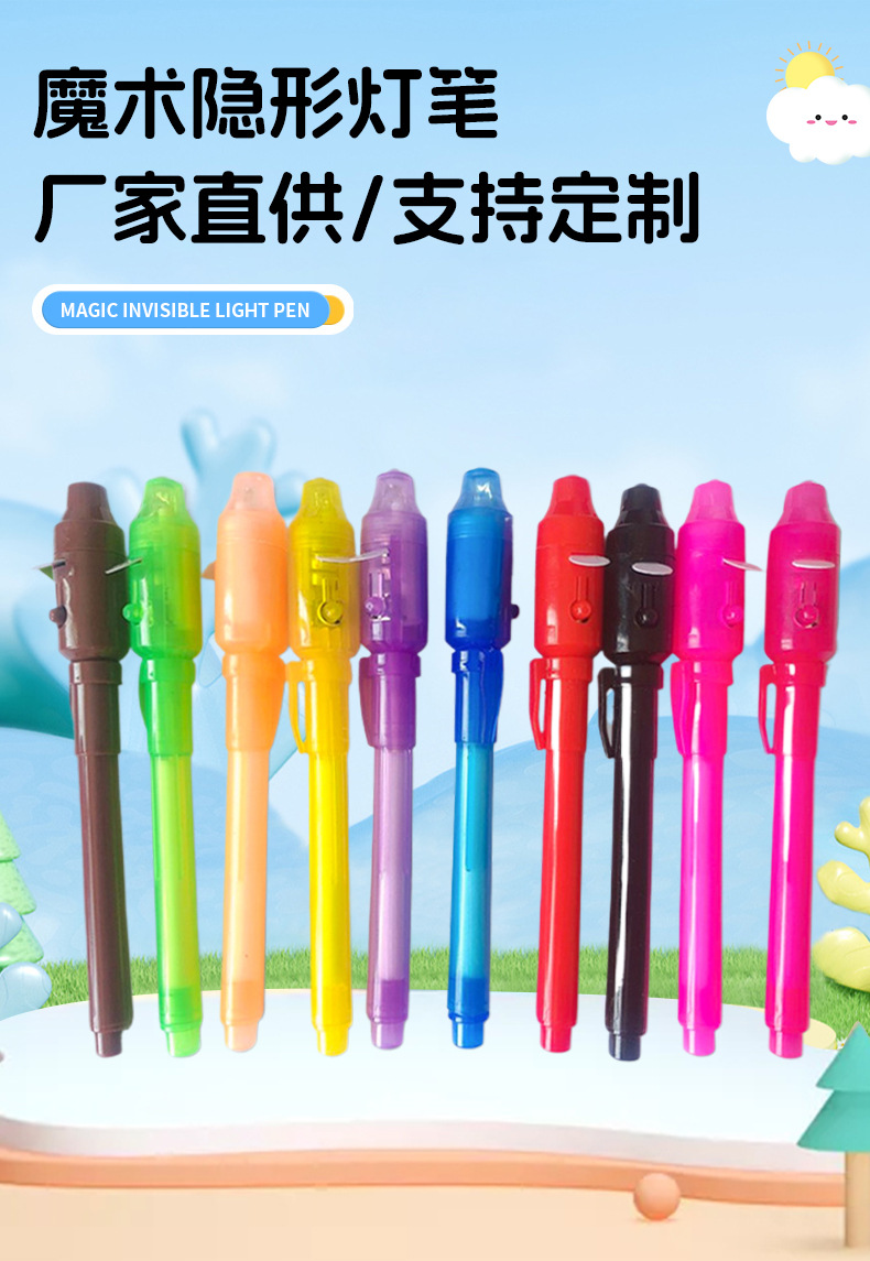 Plástico de cabeza grande lápiz de lámpara uv lápiz invisible al por mayor led luminoso ultravioleta lápiz luminoso mágico multifuncional lápiz de lámpara uv