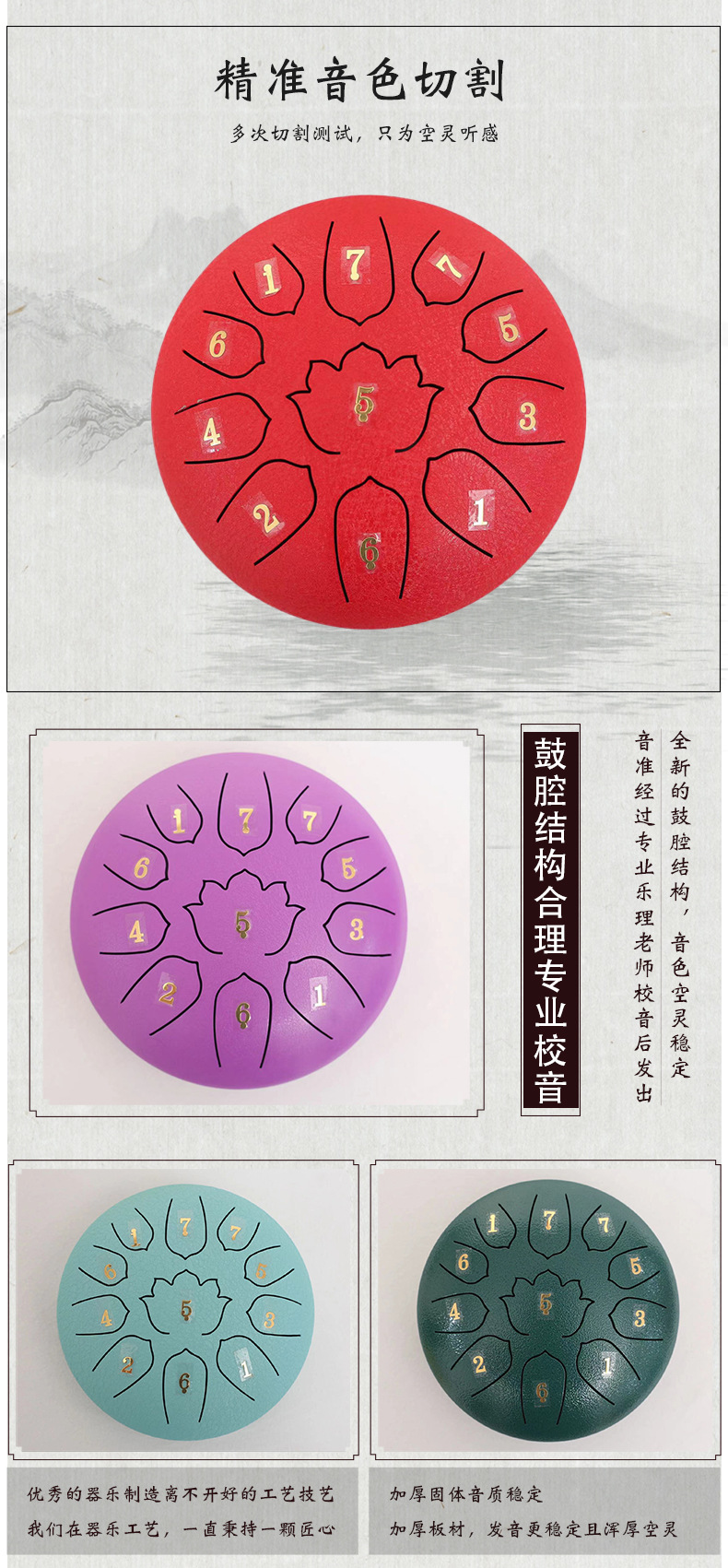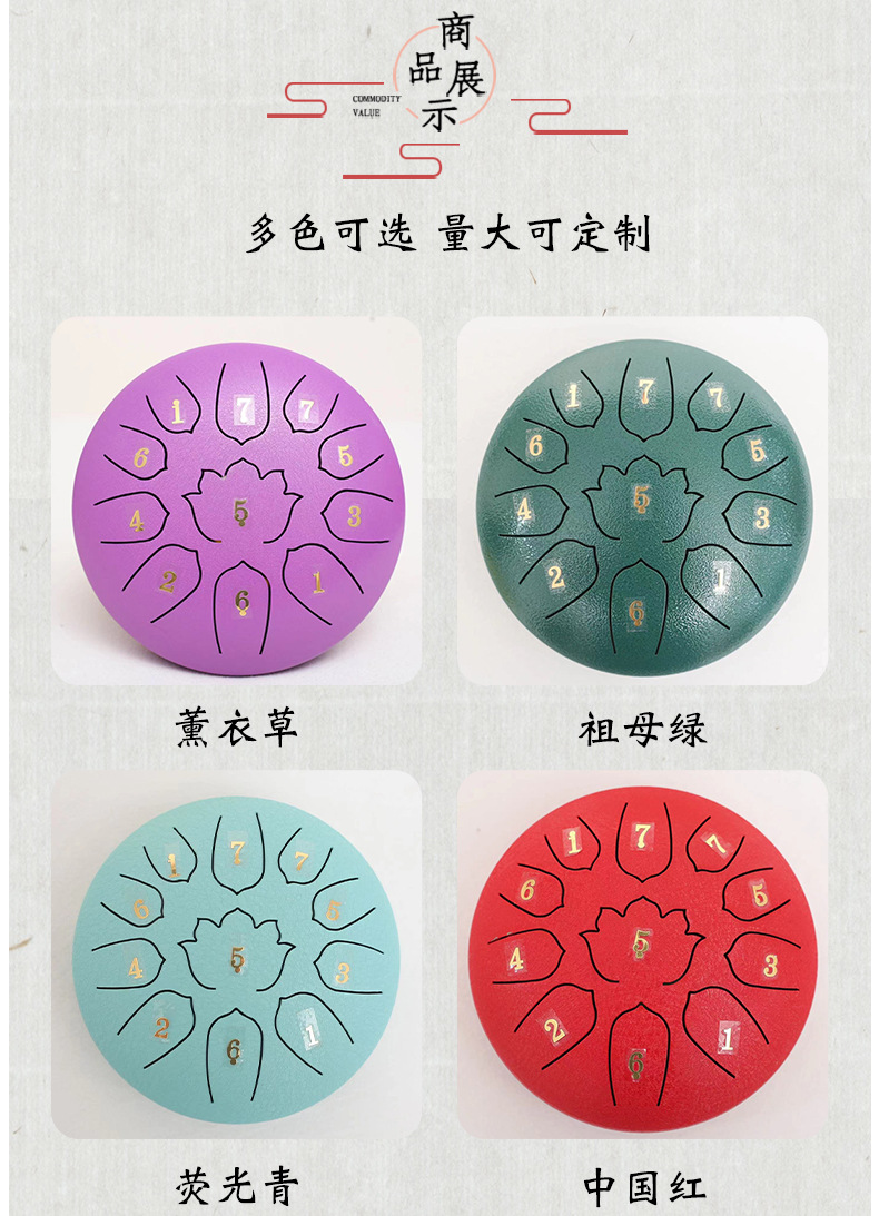 6 pulgadas 11 tonos batería etérea estilo nacional batería de loto Ruyi batería instrumento de percusión batería sánscrita olvidar la preocupación