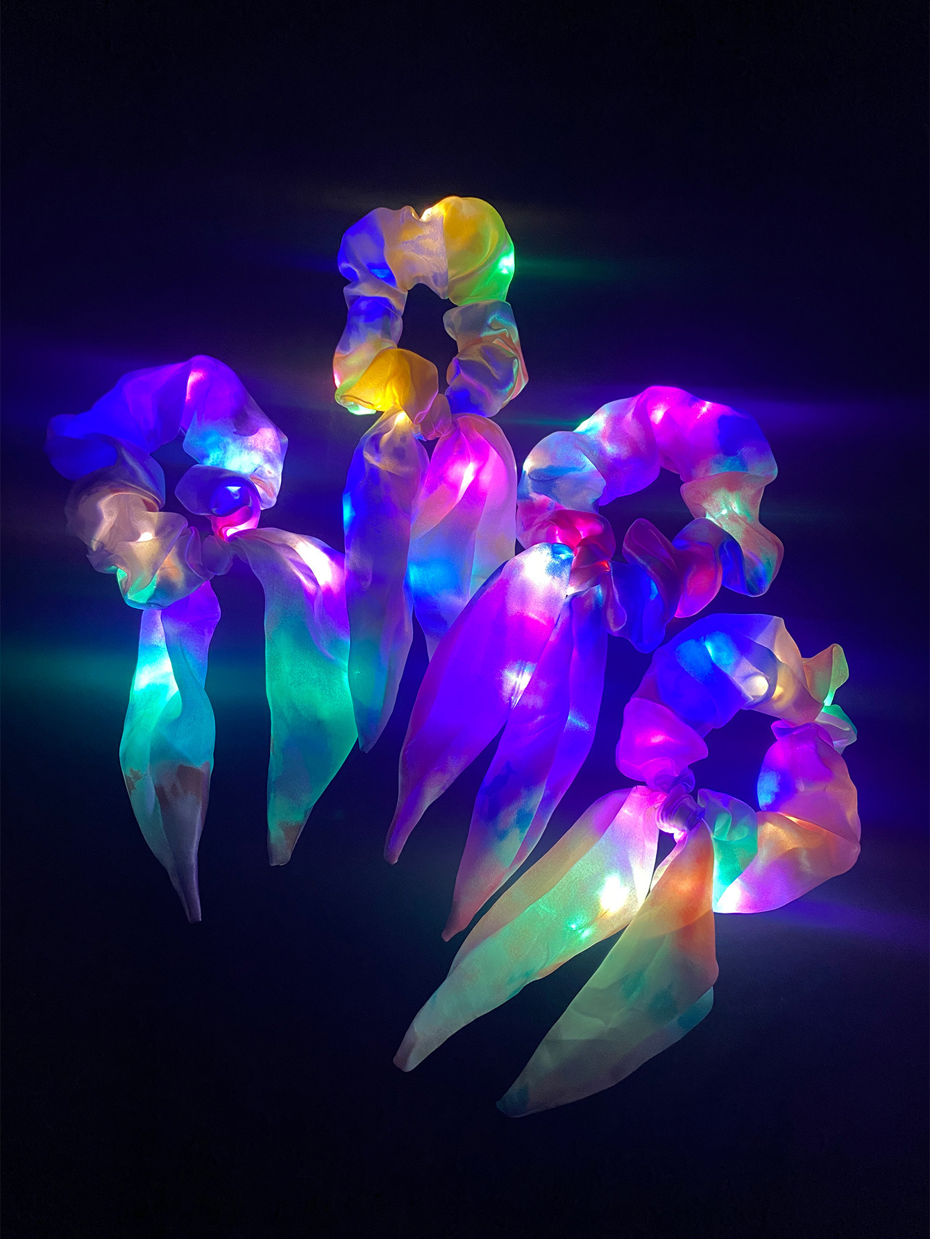 Lazo luminoso para el cabello del intestino grueso DIY luz nocturna cabeza flor brillante apoyo intestino gordo cuerda de cabeza club nocturno banda de goma accesorios para el cabello transfronterizos