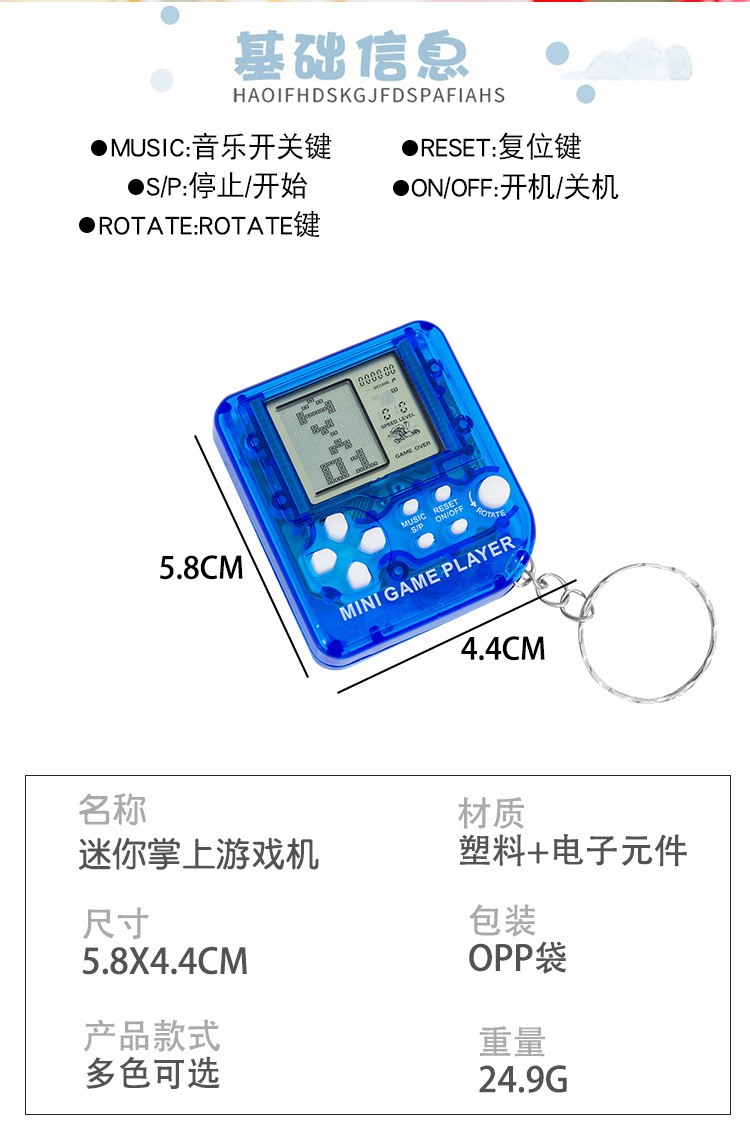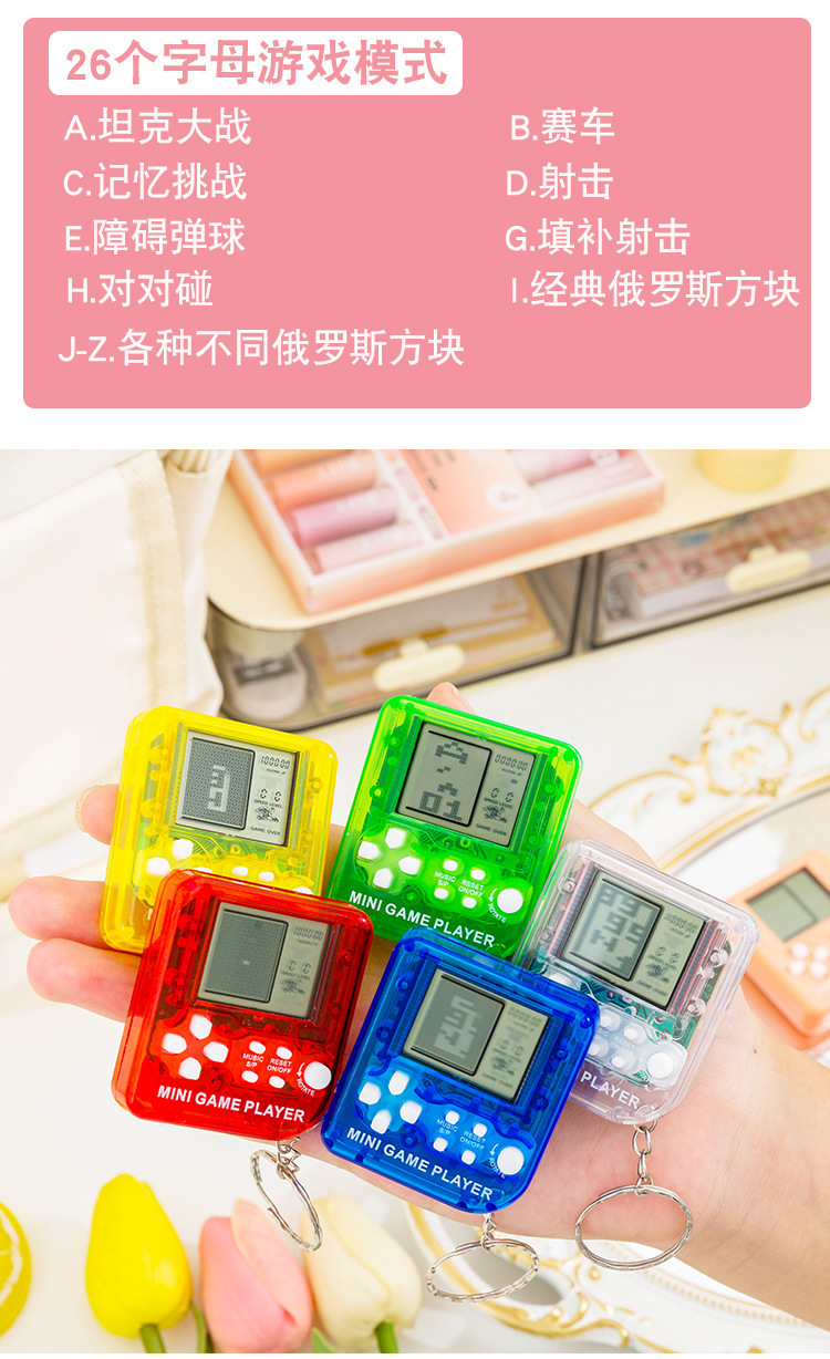 Mini consola de juegos de mano clásica nostálgica Tetris juguetes mochila colgante llavero transfronterizo