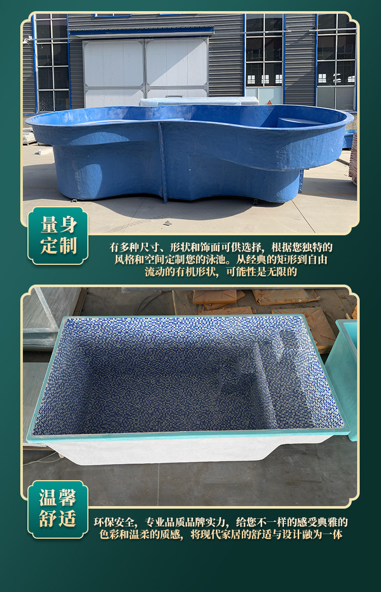 Piscina de fibra de vidrio de diseño personalizado, de forma irregular, jacuzzi, piscina exterior para uso doméstico, casa de huéspedes, villa, modelo de piscina, spa